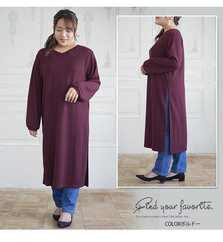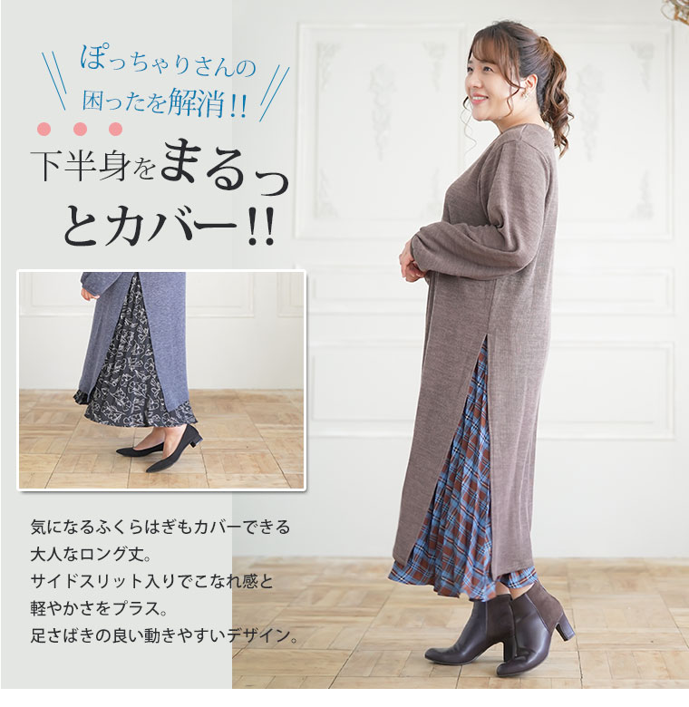 すとんと楽ちんお洒落で細魅せ美人な暖かIラインワンピース
