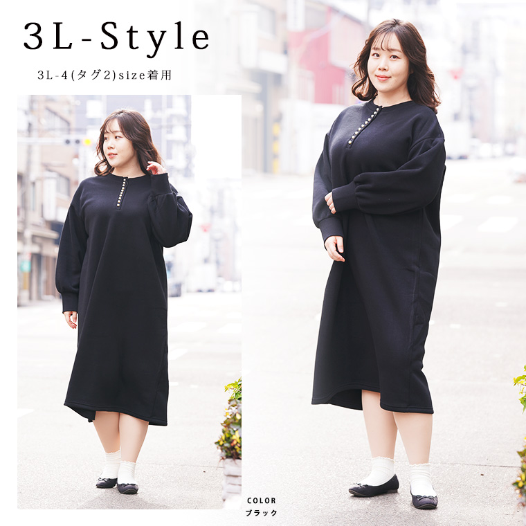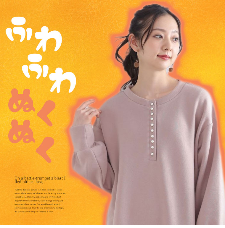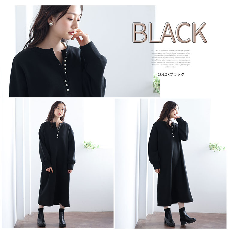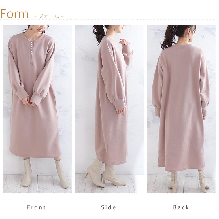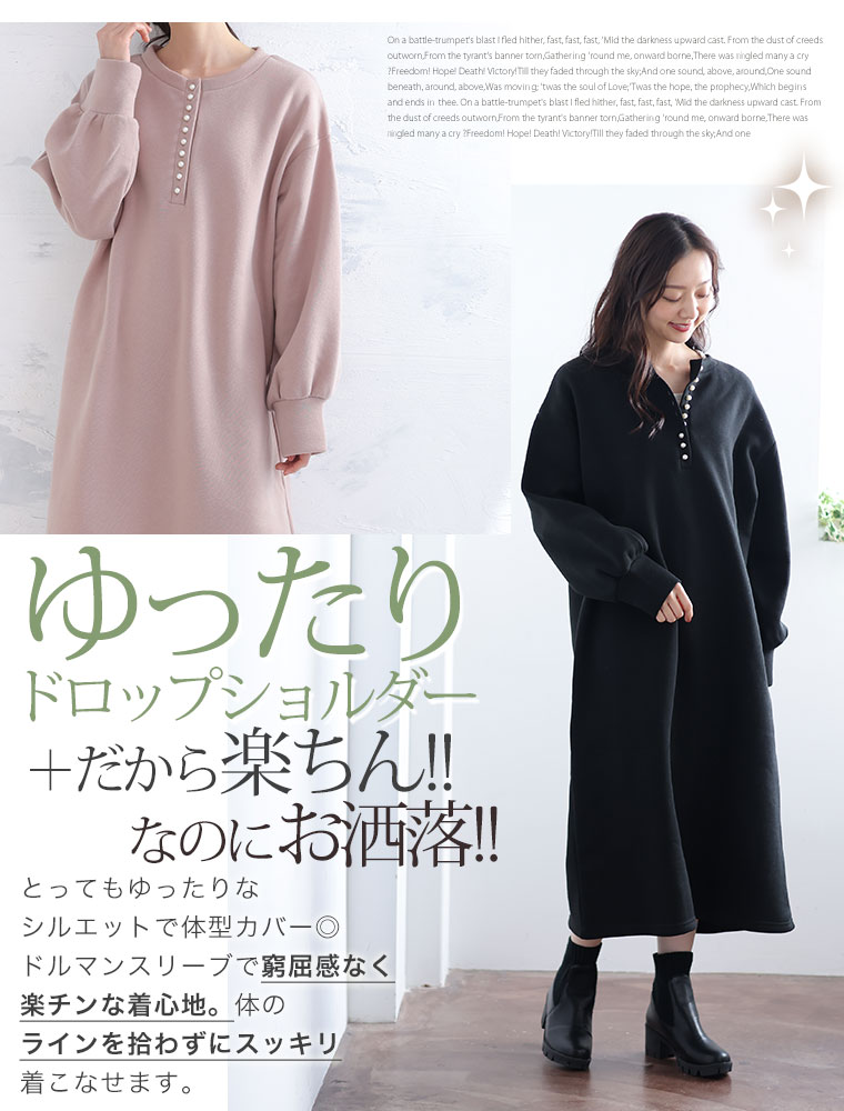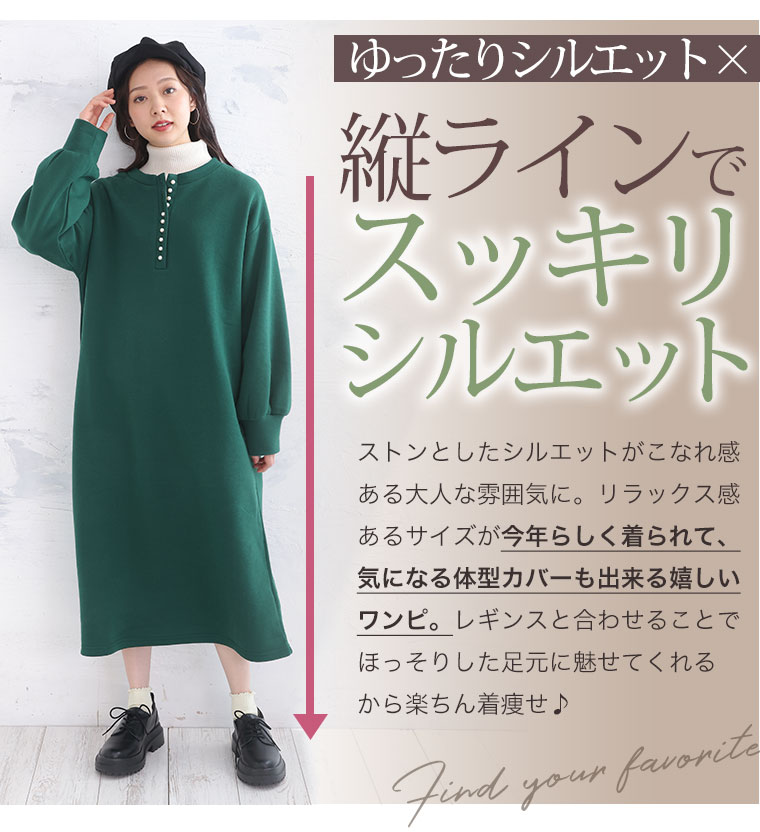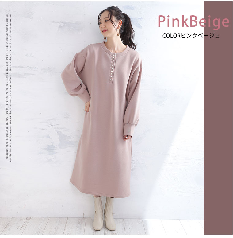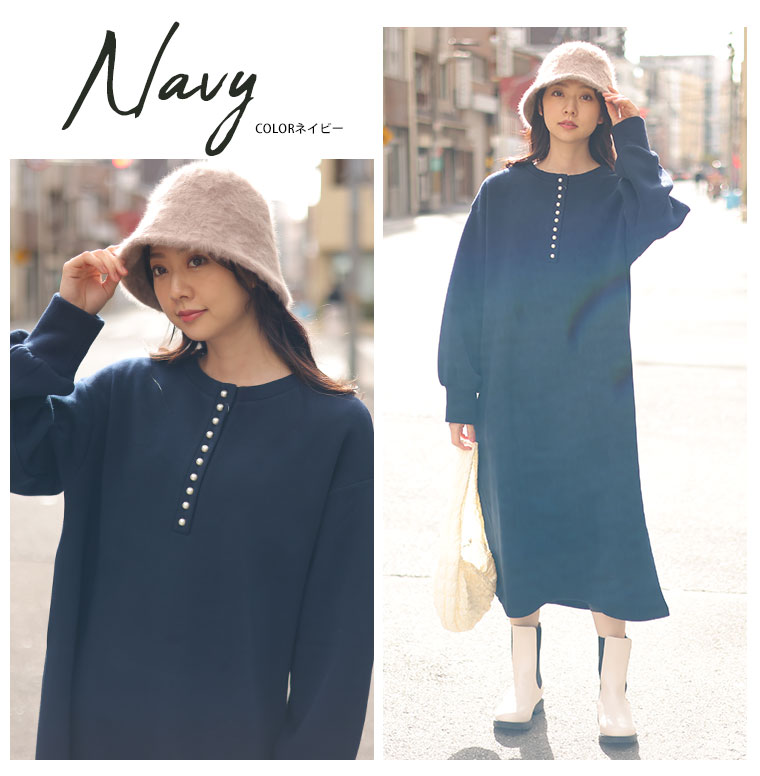 着るだけ暖かオシャレ!裏起毛パールボタンAラインワンピース