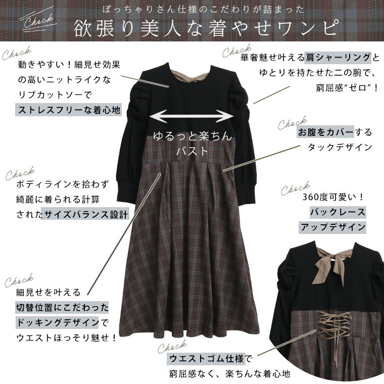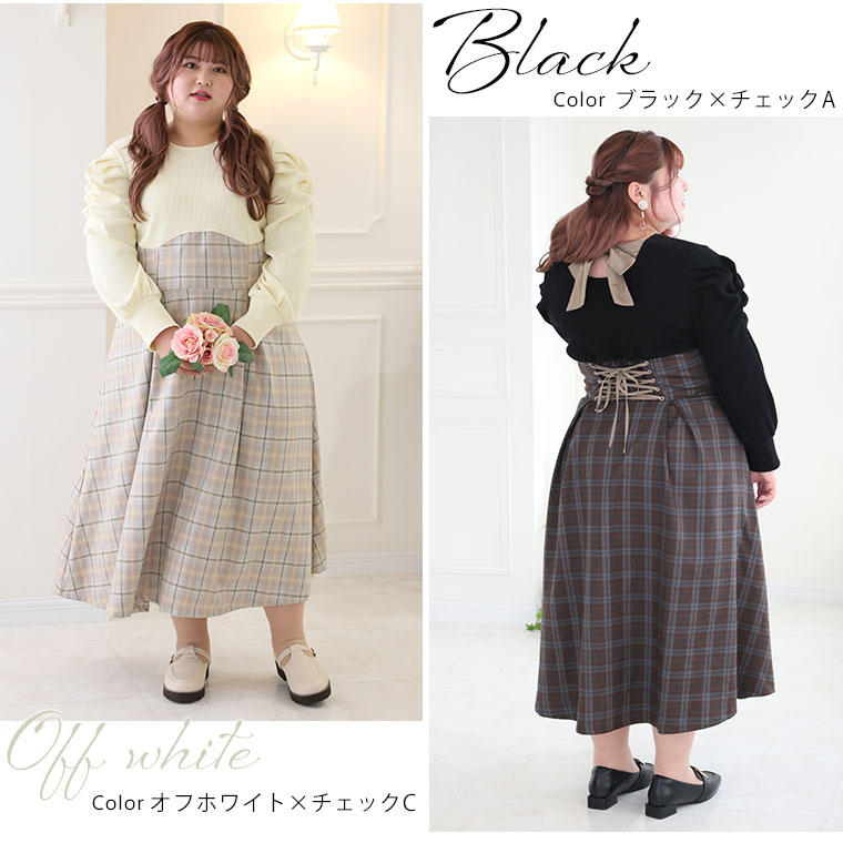 オリジナル ワンピ ロングワンピース LL 3L 4L 5L 6L 秋 秋物 秋服 冬 冬物 冬服 ぽっちゃり ゆったり lafarfa コラボ プラスサイズ 新色追加!! 【ラファモプロデュース】 バックリボン ドッキングワンピース (れいぼん) ラファーファ