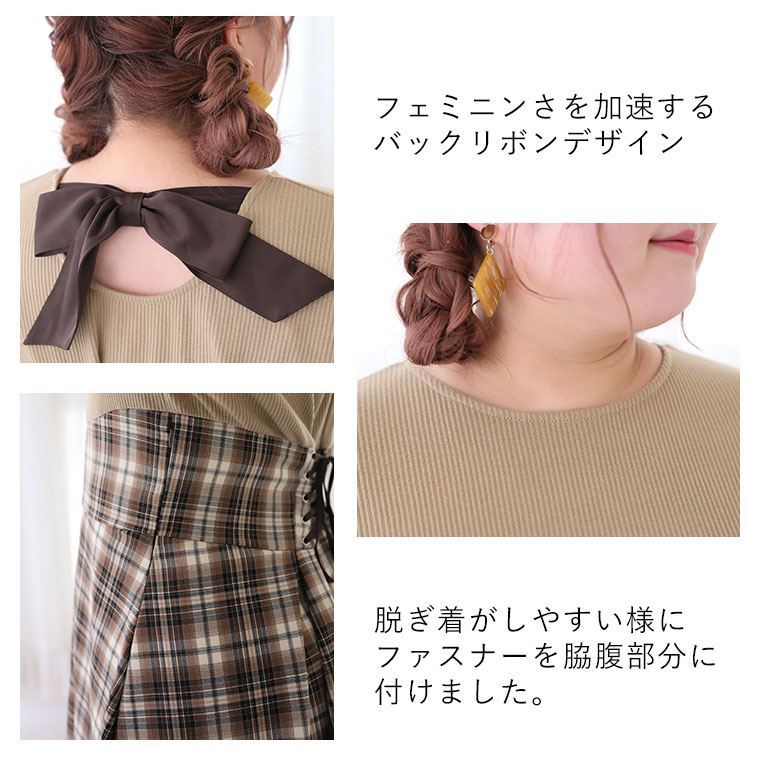 3. 大きいサイズ 新色追加!! 【ラファモプロデュース】 バックリボン ドッキングワンピース (れいぼん) ラファーファ