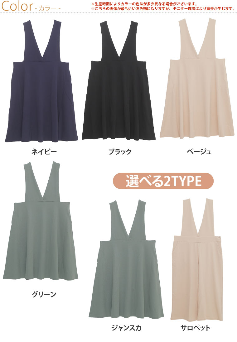 選べる2デザインでスッキリ着痩せ!!膨れジャガードサロペット・ジャンスカ