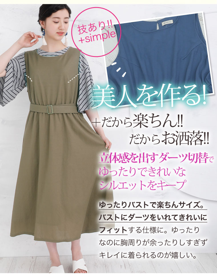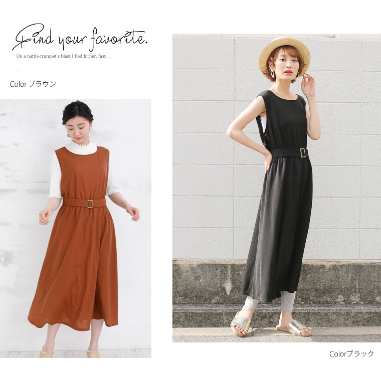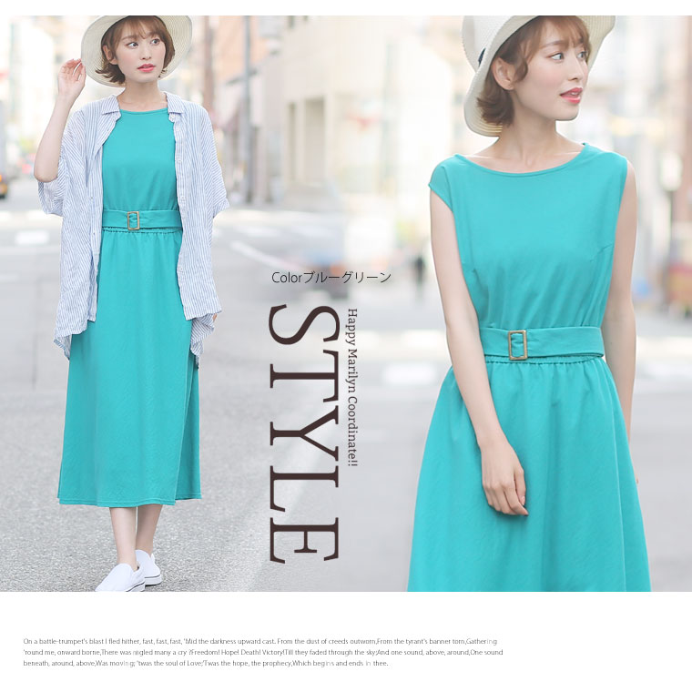 ノースリーブデザインで大人っぽい着こなしに。ウエストベルトでメリハリシルエットの完成!!