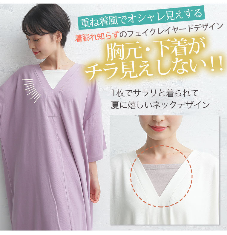 シンプルに着こなすレイヤード風ワンピース