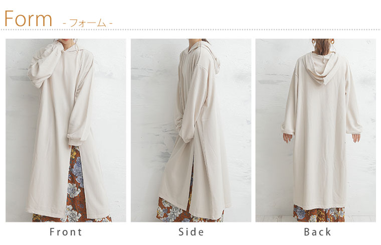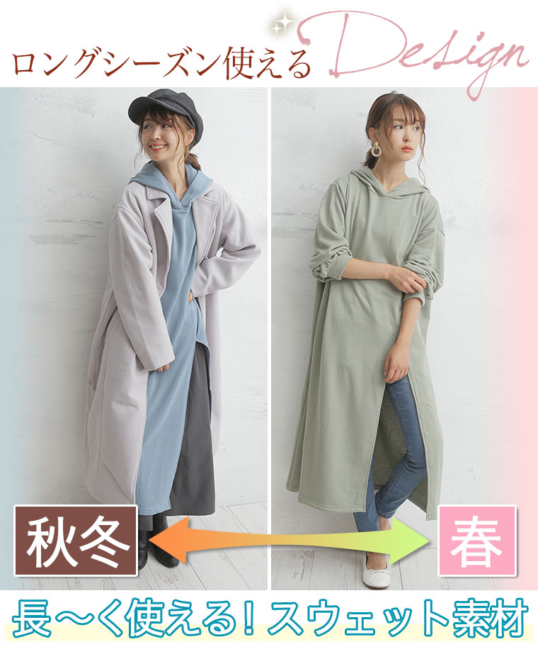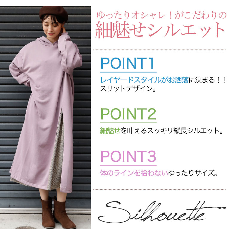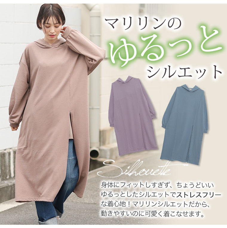 ゆったりお洒落な細魅せシルエットが嬉しいパーカーワンピース