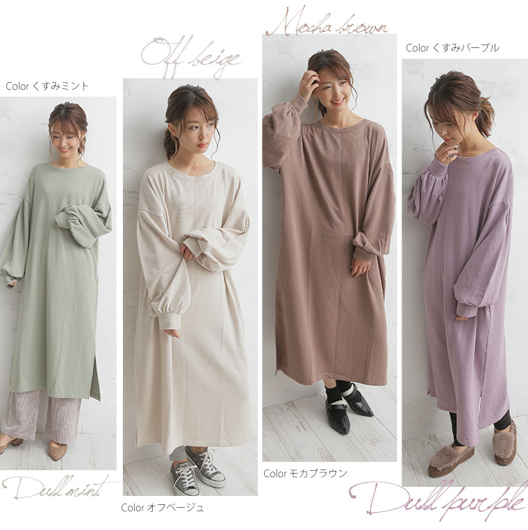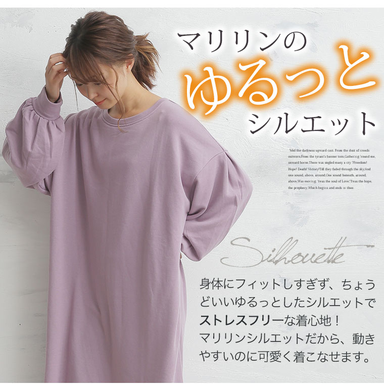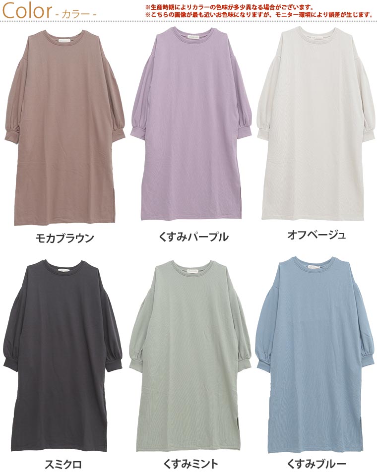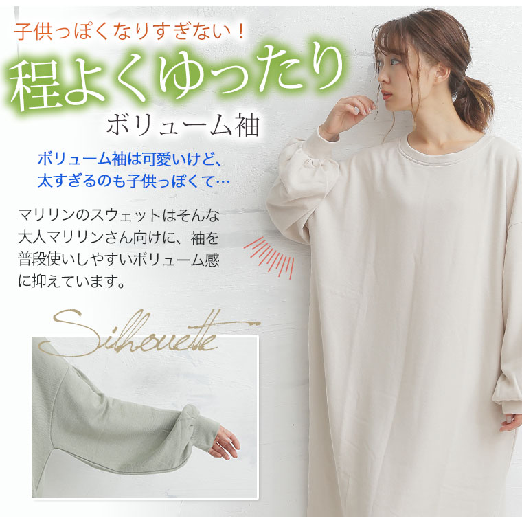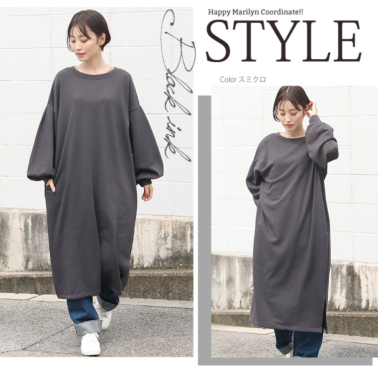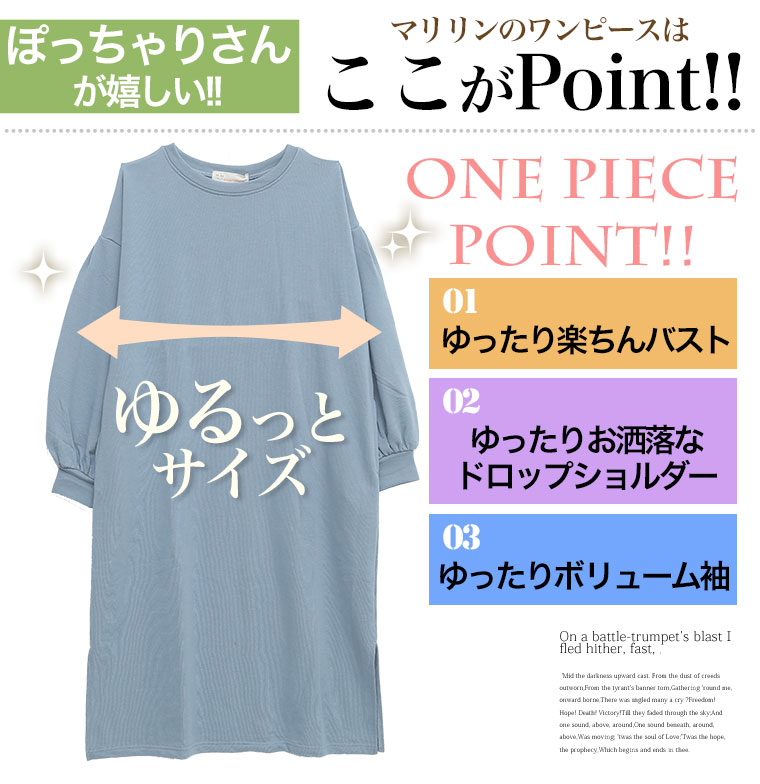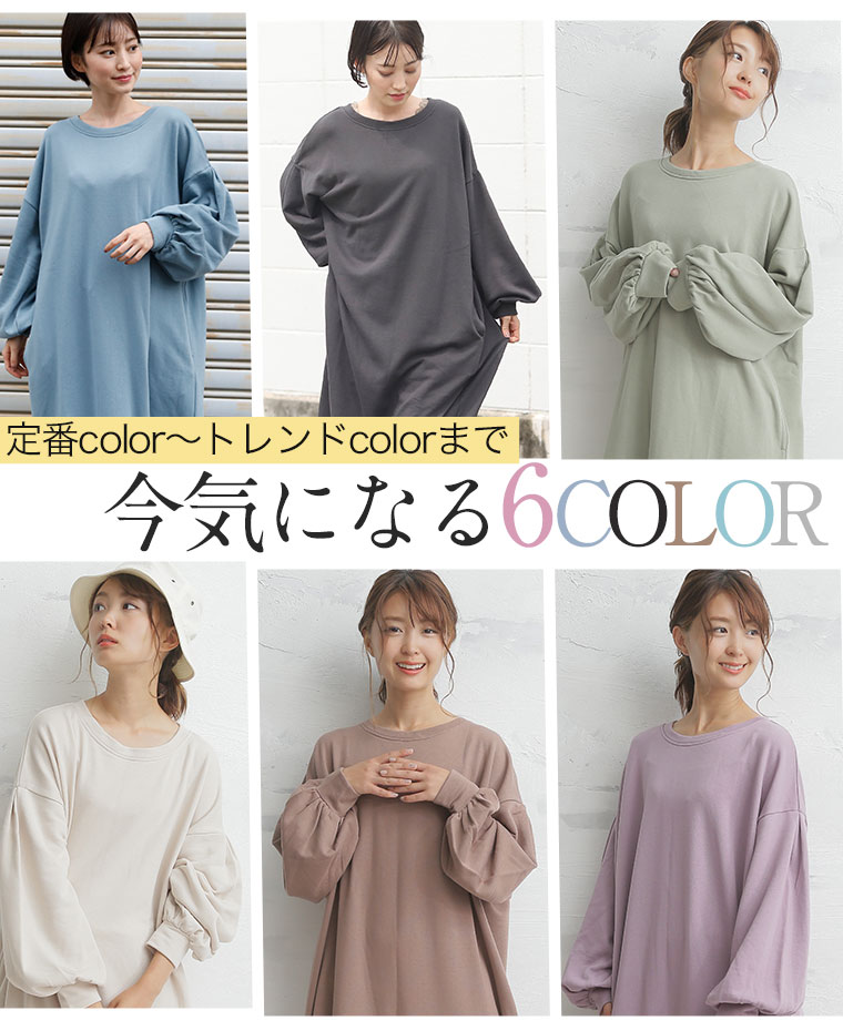 身体のラインを拾わないゆったりサイズなのにお洒落にきまる!ボリューム袖がかわいいお洒落ワンピース