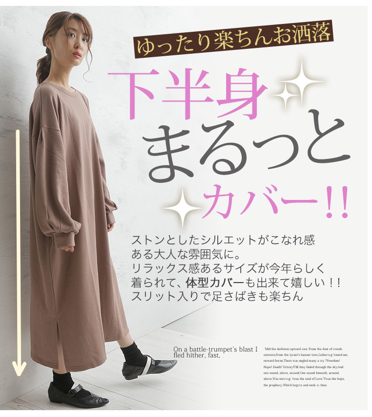 たっぷりゆったり気になる体型をカバーしてくれるBIGシルエット!楽ちんワンピでロングシーズン使える