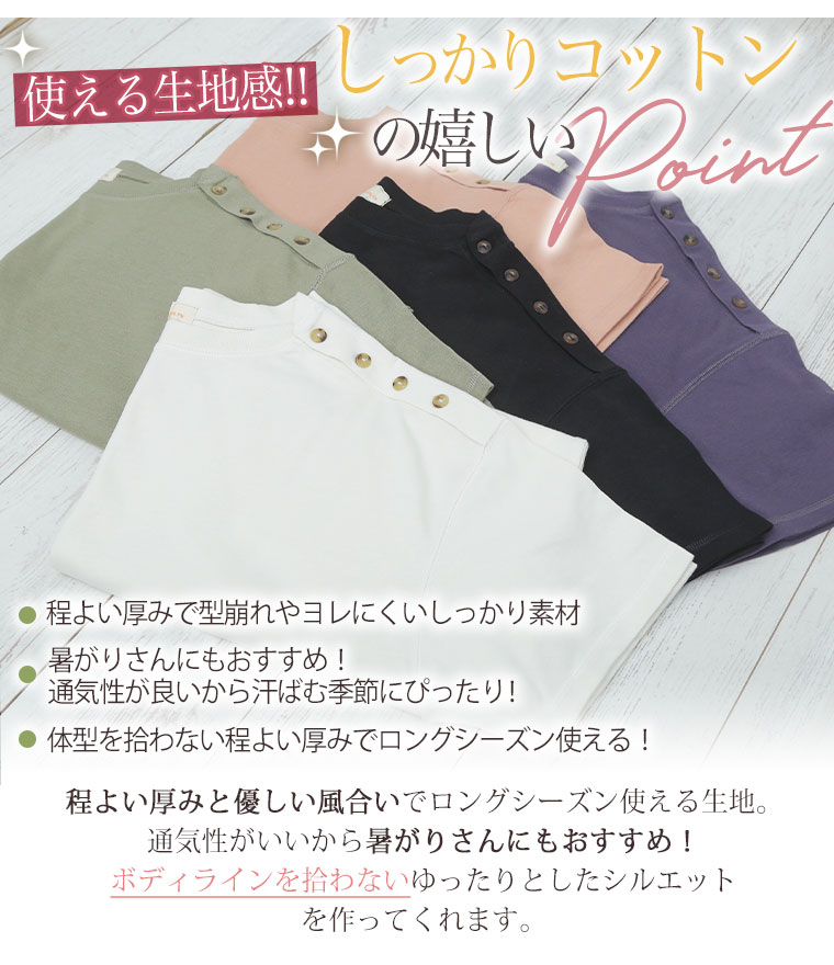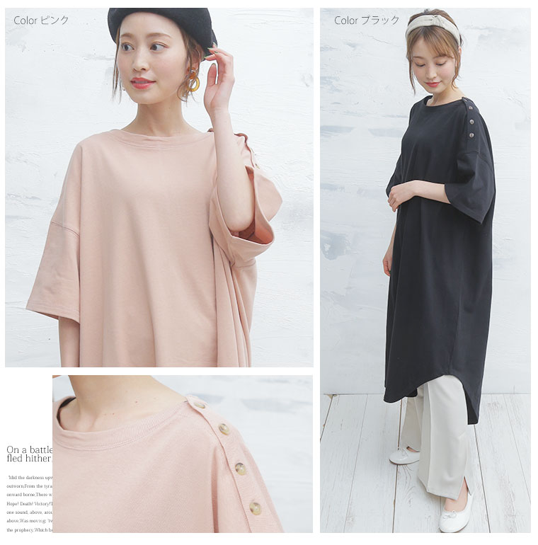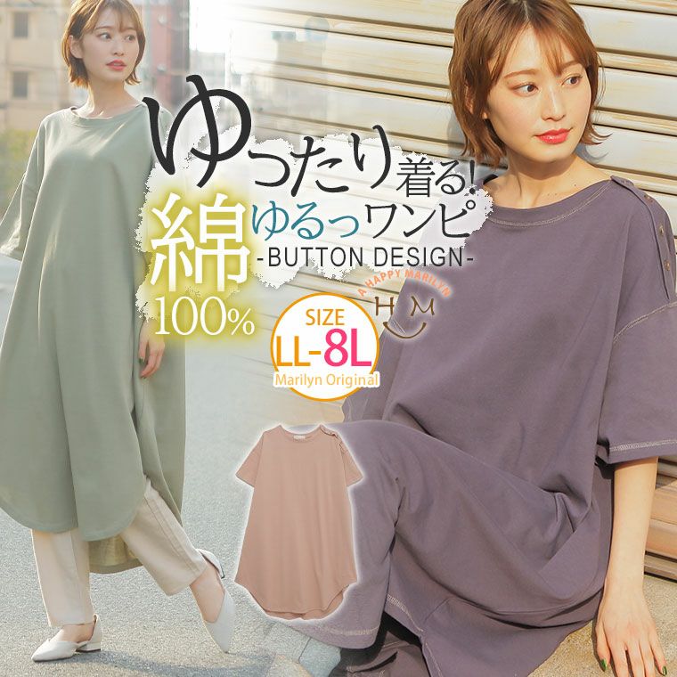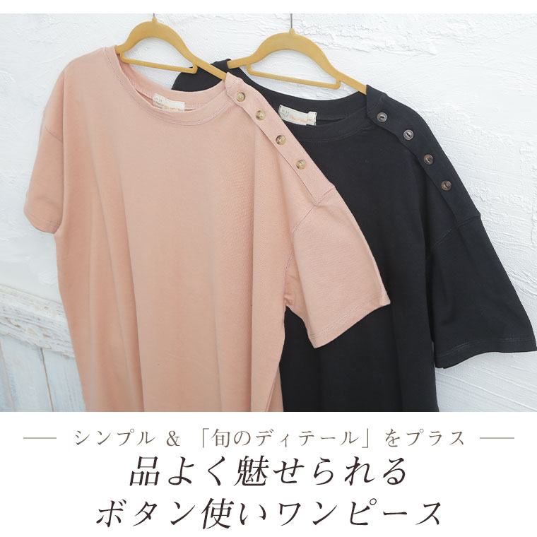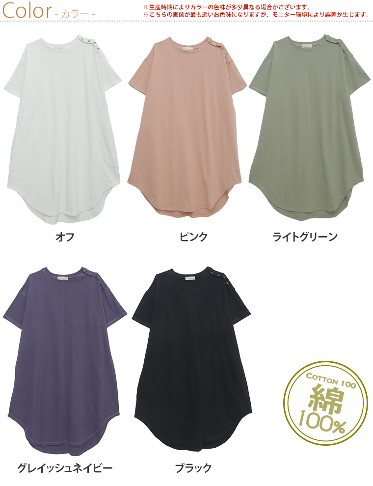 コットン100% 肩ボタンがかわいいワンピース
