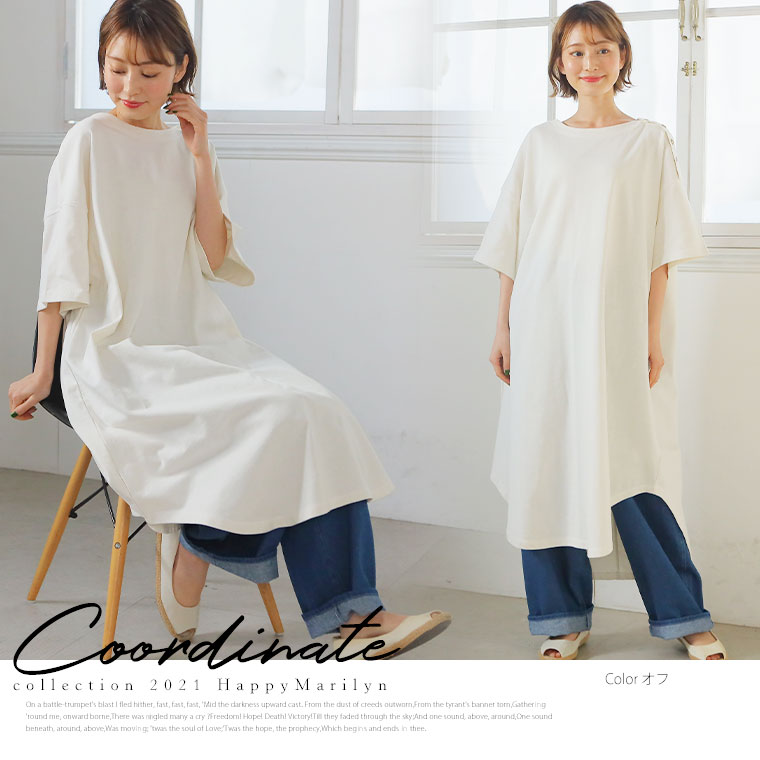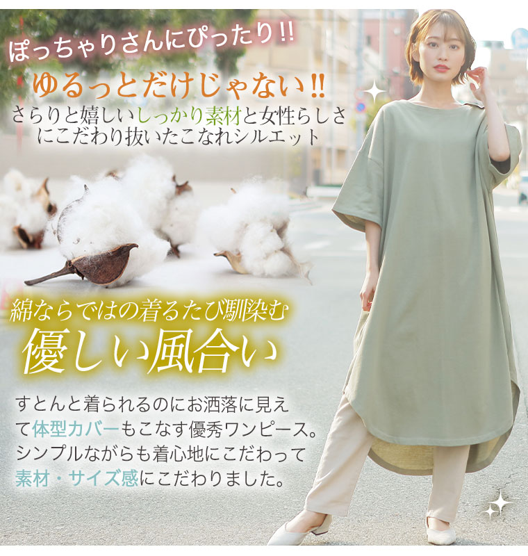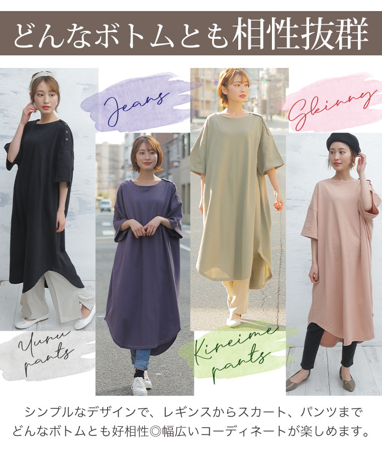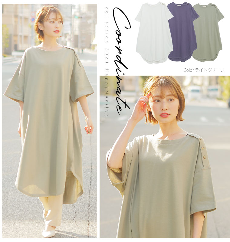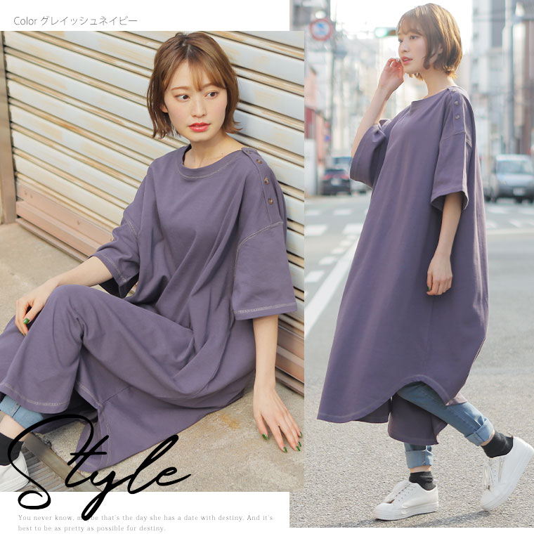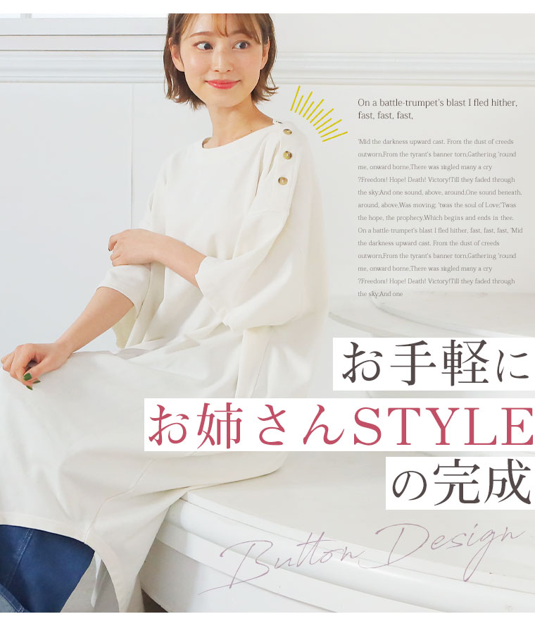 コットン100% 肩ボタンがかわいいワンピース