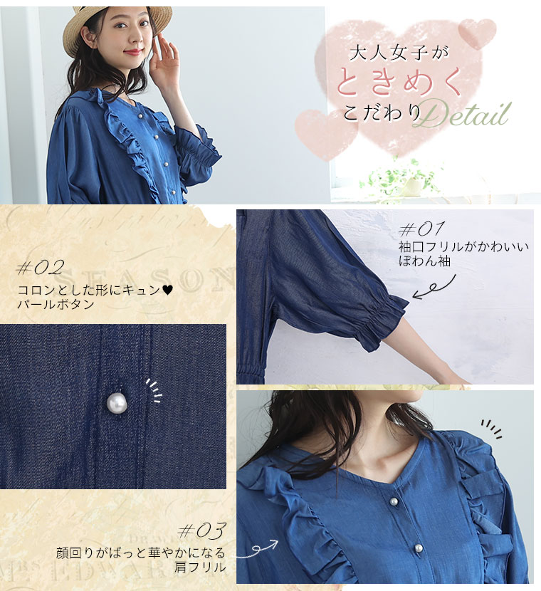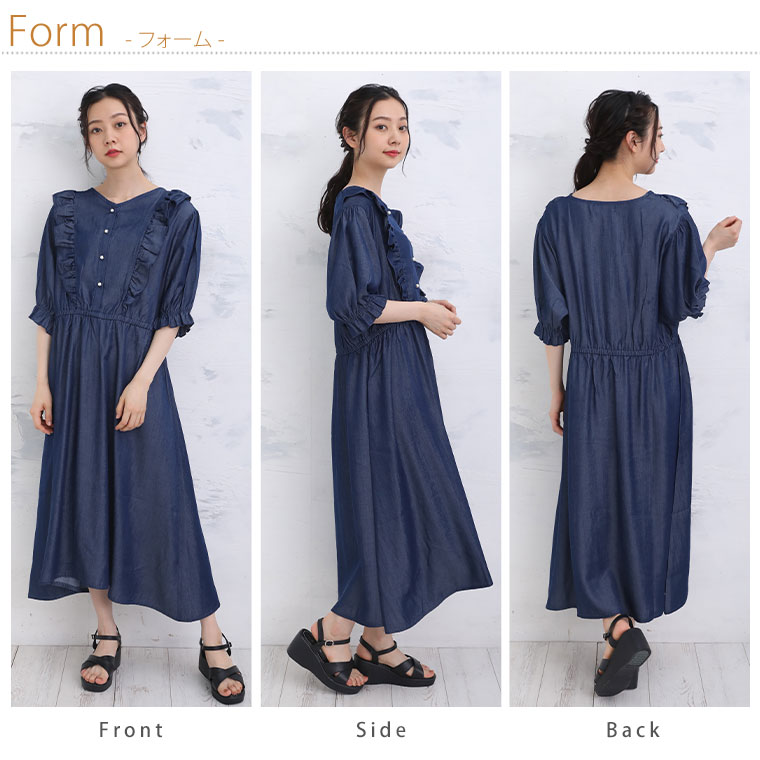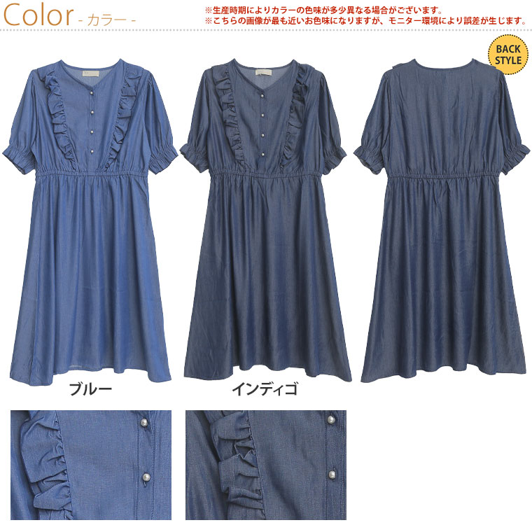 3. 大きいサイズ フリルが甘かわいい やわとろ デニム調 ワンピース
