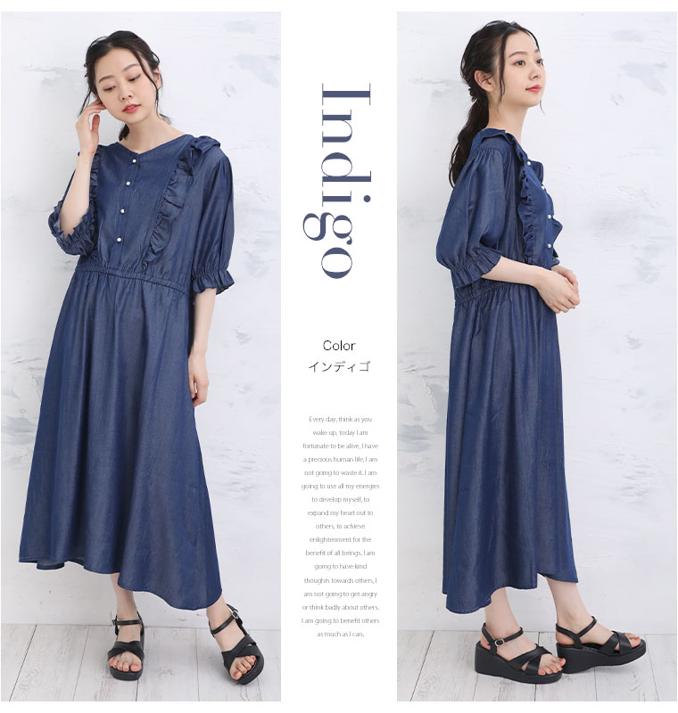 4. 大きいサイズ フリルが甘かわいい やわとろ デニム調 ワンピース