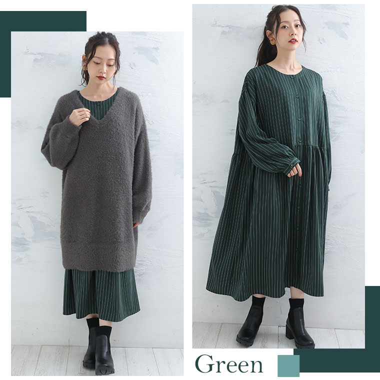 フロントボタンは開けれる仕様に。ワンピースとしても、羽織としても使える。
