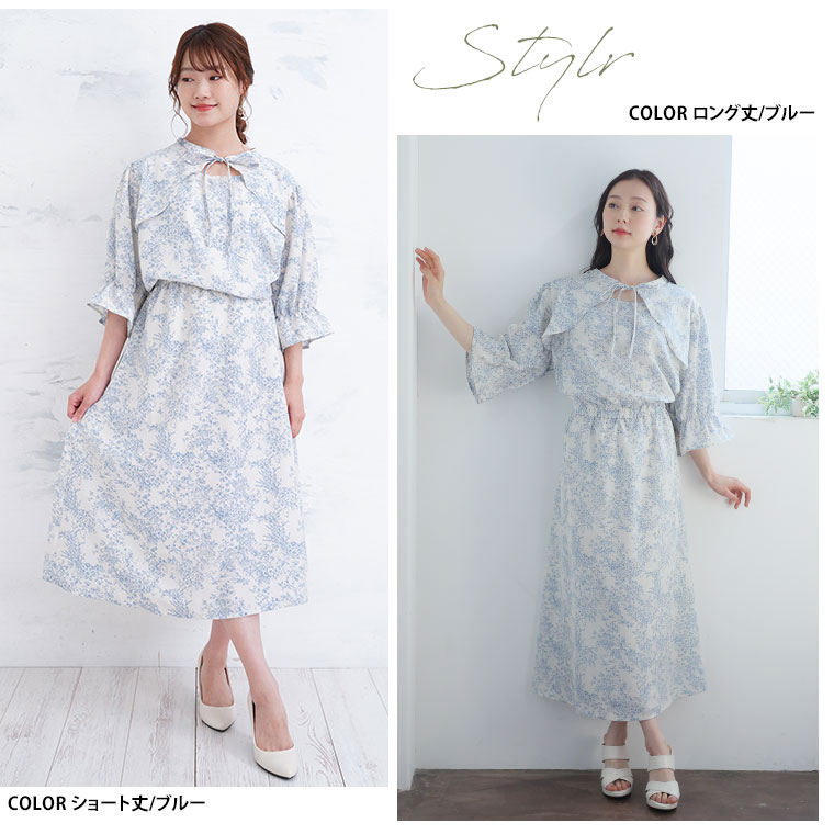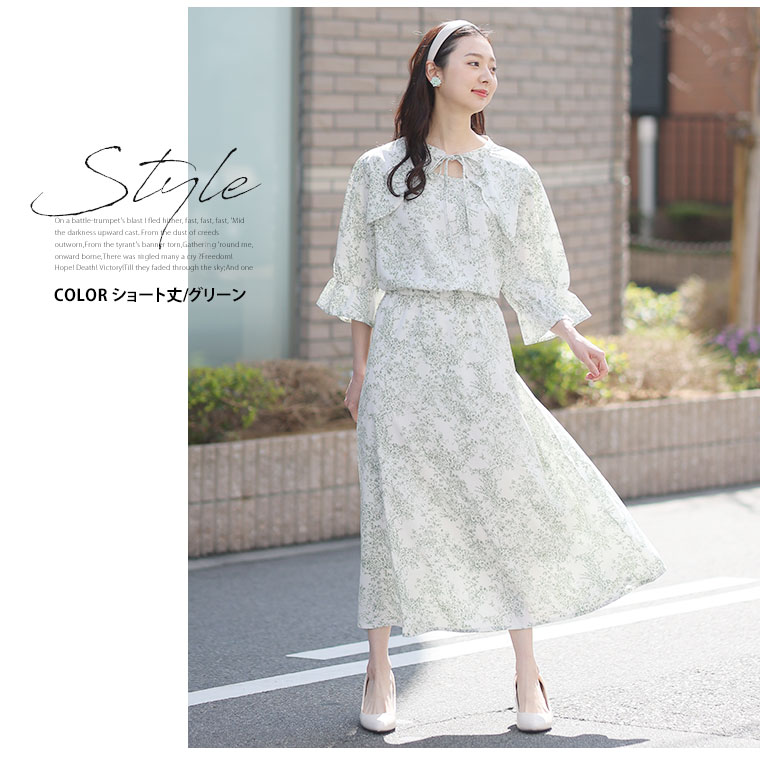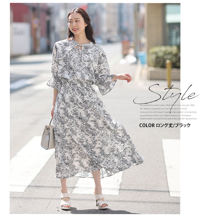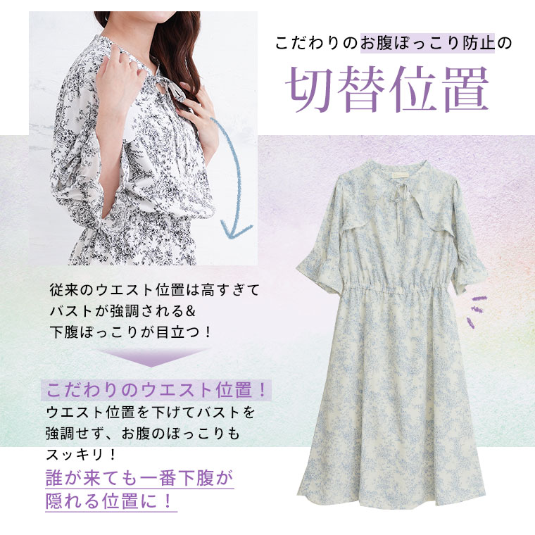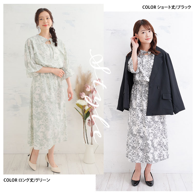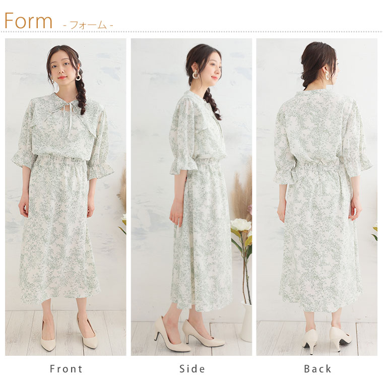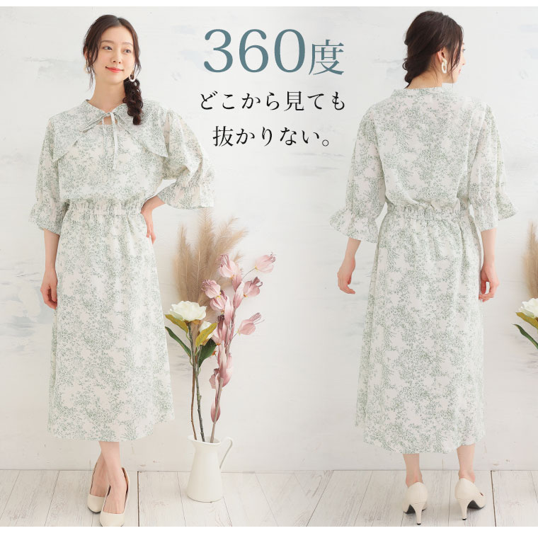 後ろ姿もかわいいデコルテ美人の花柄ワンピース
