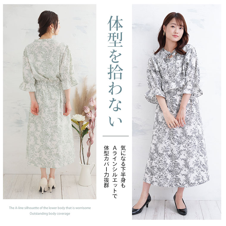 フレアスカートのAラインシルエットが綺麗になびいて体型カバー