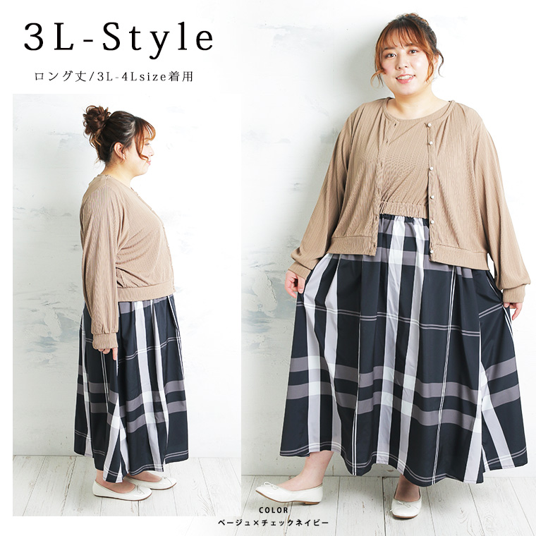 3. 大きいサイズ 「春映え」 わたしの味方ワンピ カーデ&ワンピース 2点セット