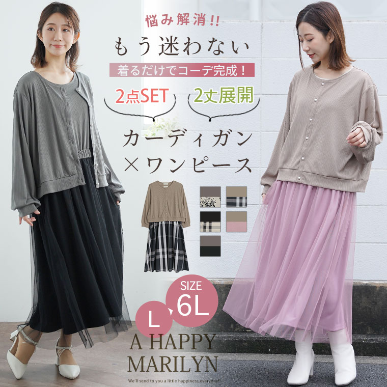 6. 大きいサイズ 「春映え」 わたしの味方ワンピ カーデ&ワンピース 2点セット