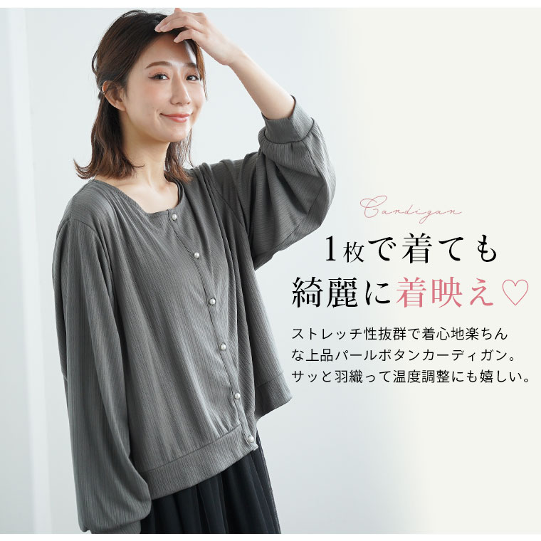 カーディガンはシワにならなくて、着心地がいいと思います。 ただ、スカート部分はシワが付きやすいのと、素材がちょっとゴワゴワします。
