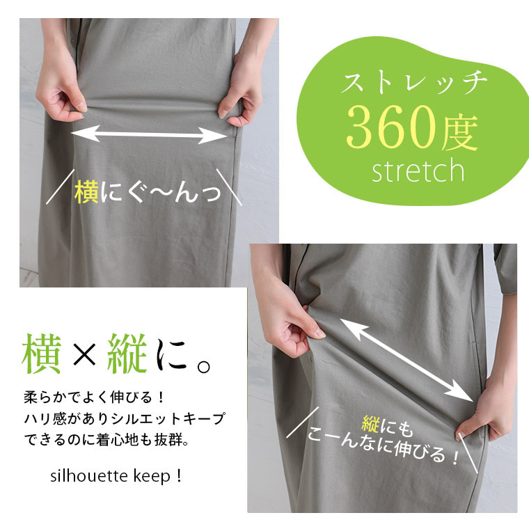 縦にも横にも伸びる360度ストレッチ素材でぽっちゃりさんに嬉しい!