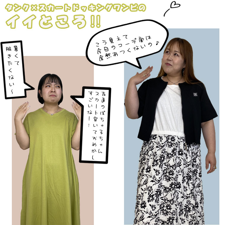 食い込まなくて楽!タンク×スカートドッキングワンピ
