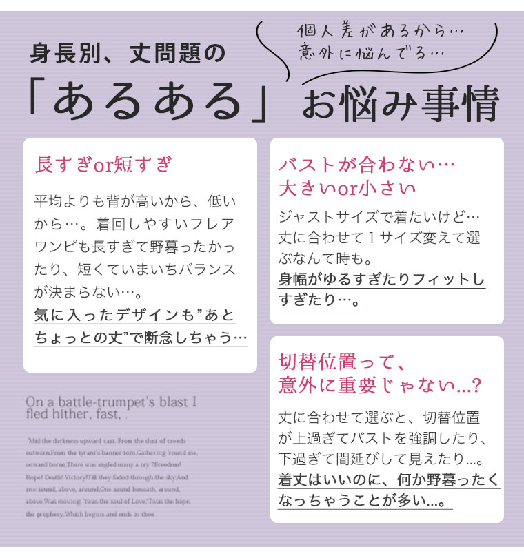 低身長用のワンピはうれしい限りです。150なので・・・。こちらで気に入ったワンピで丈長いと自分で直すですがこれはよかった。カラーもデザインも好みで説明のように生地は厚め薄めの中間くらい。もう少し薄いかと思ってたけど型崩れしなさそうな感じです。ゆったりでいい感じです。この生地だと本当にロングシーズンいけますねレイヤードOK。カラーで迷ったので違う色も欲しいかな。