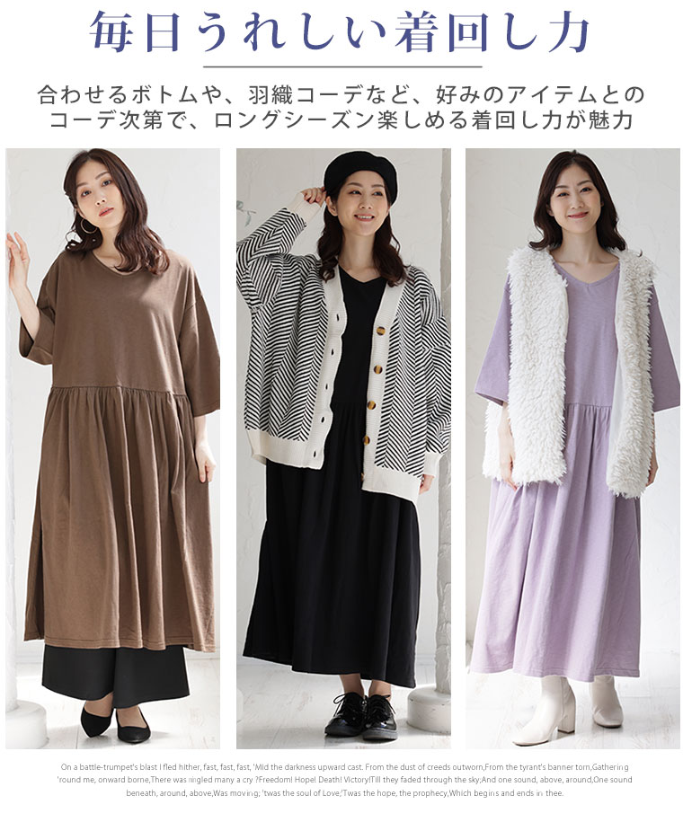 優しい着心地 体型カバーもばっちり!コットン100%ワンピース