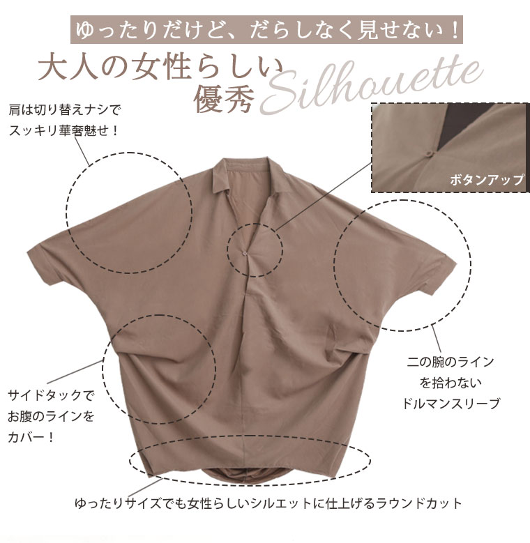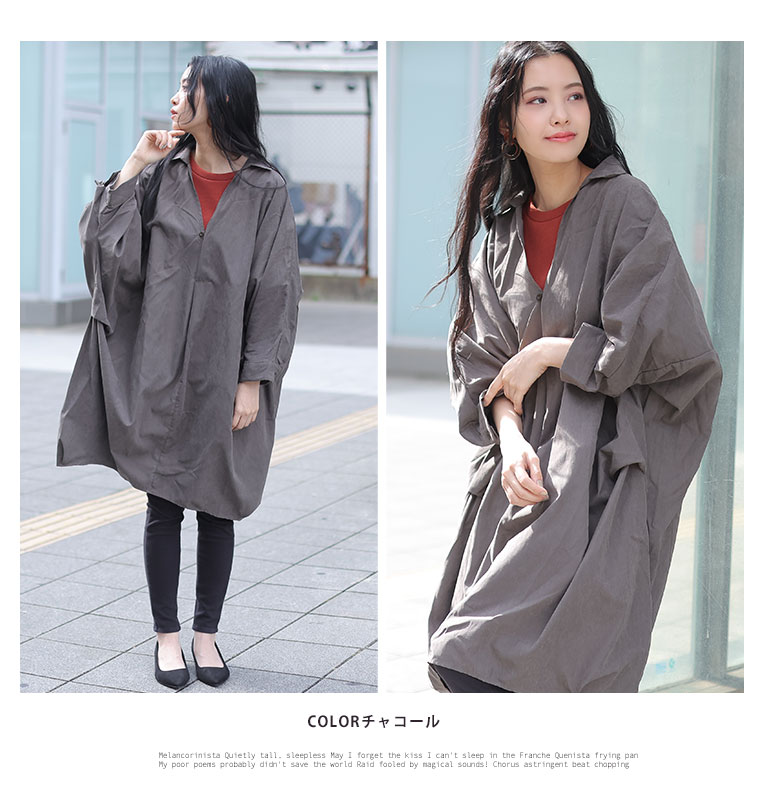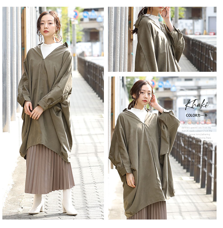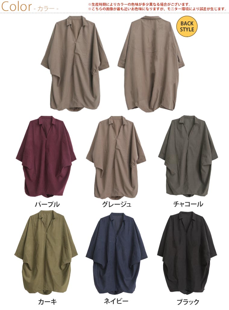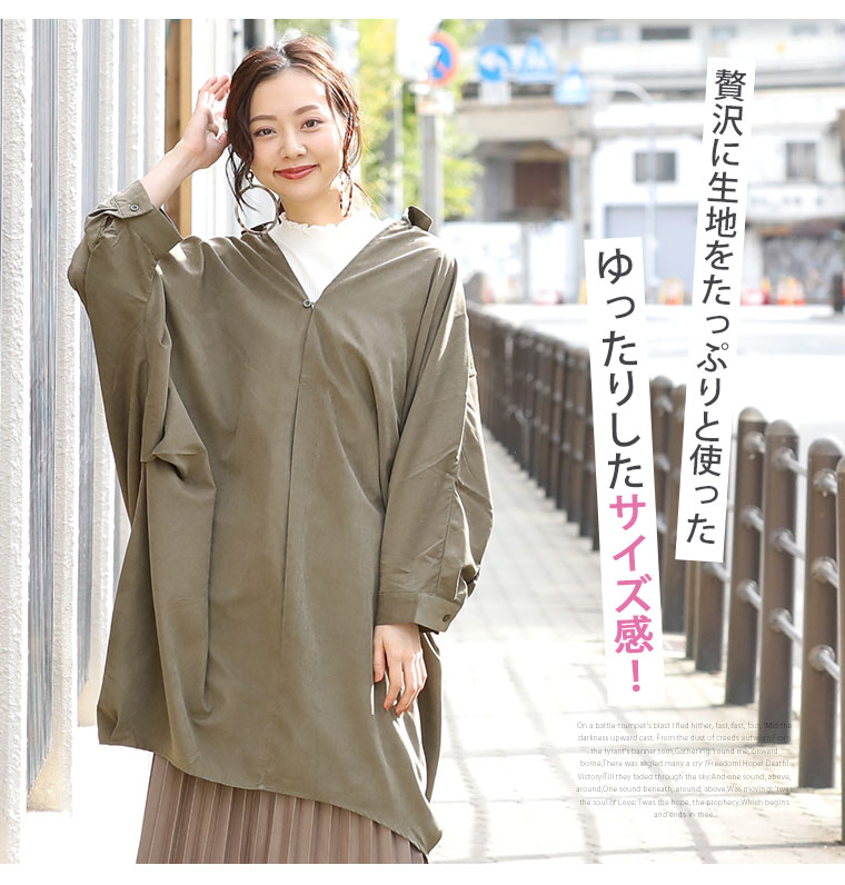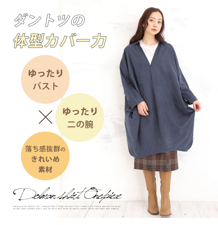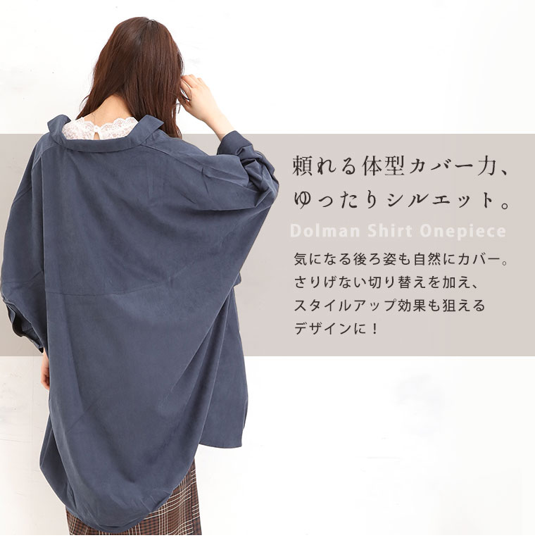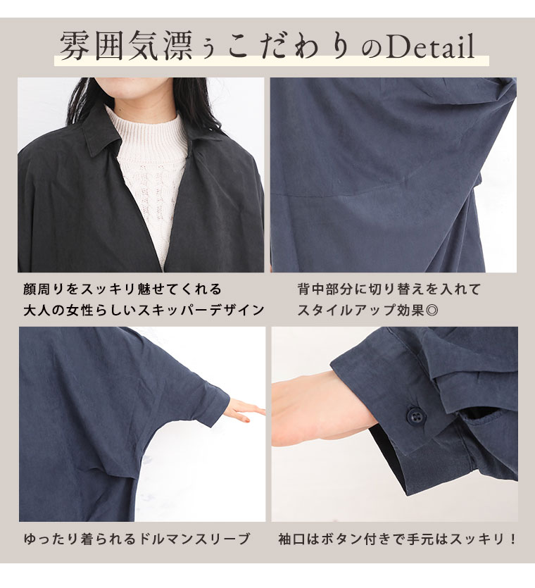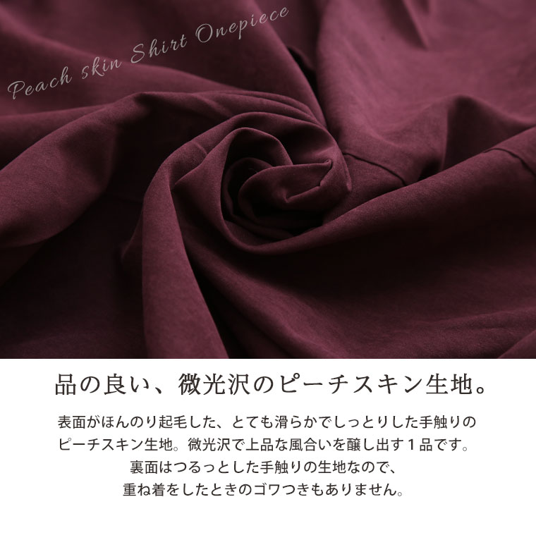 品の良いピーチスキン素材のドルマンシャツワンピース