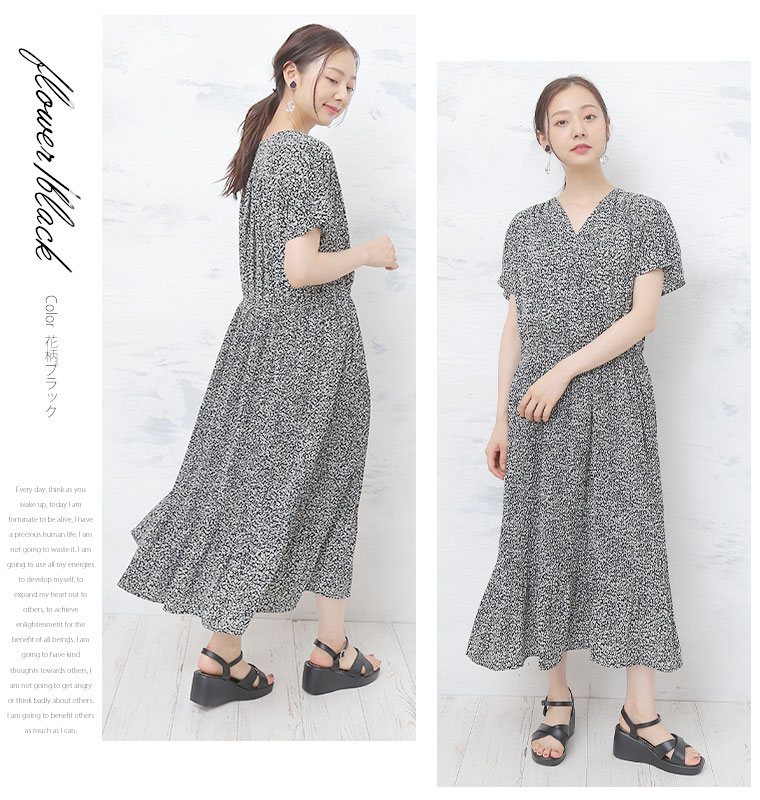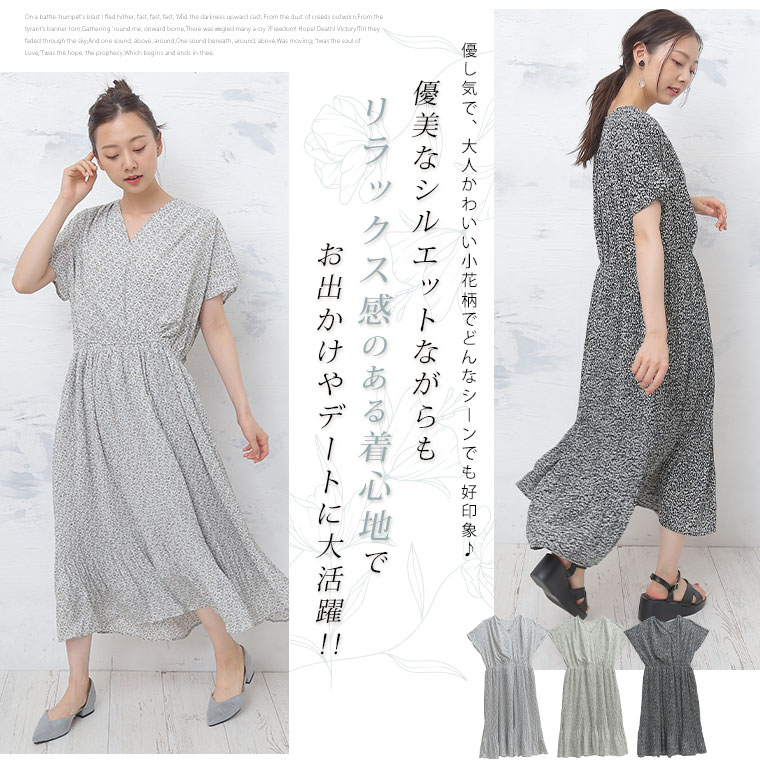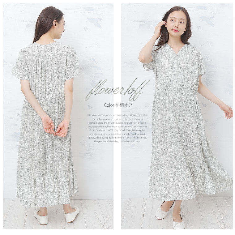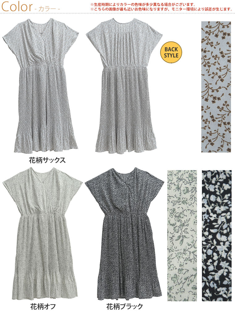フレンチ袖 上品花柄Onepiece