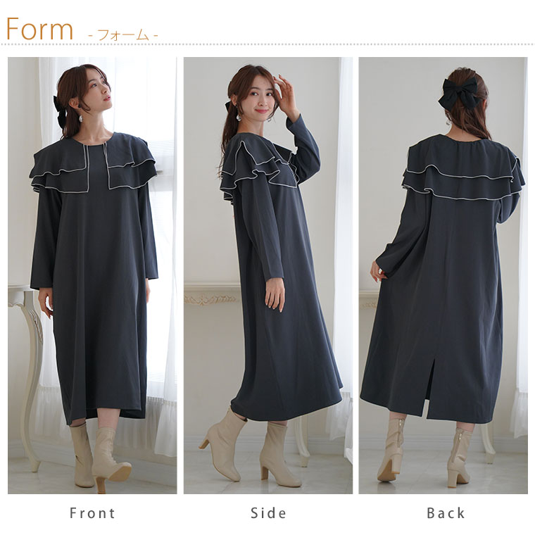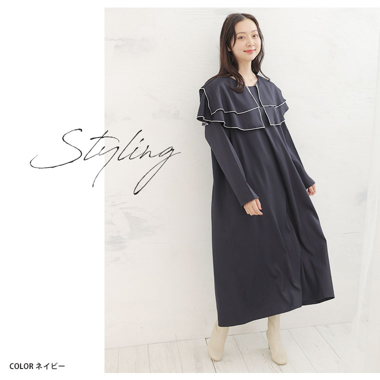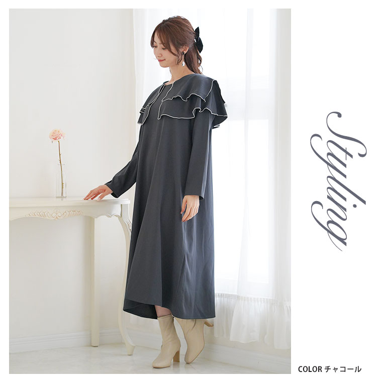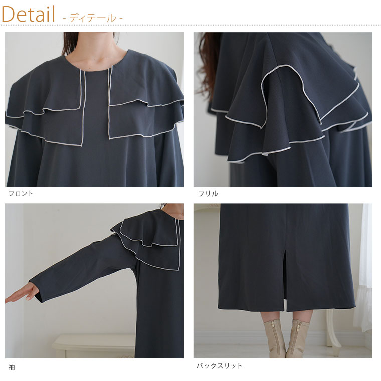 体型別フェミニンアイテム。パイピングフリルがかわいいワンピース