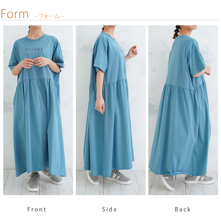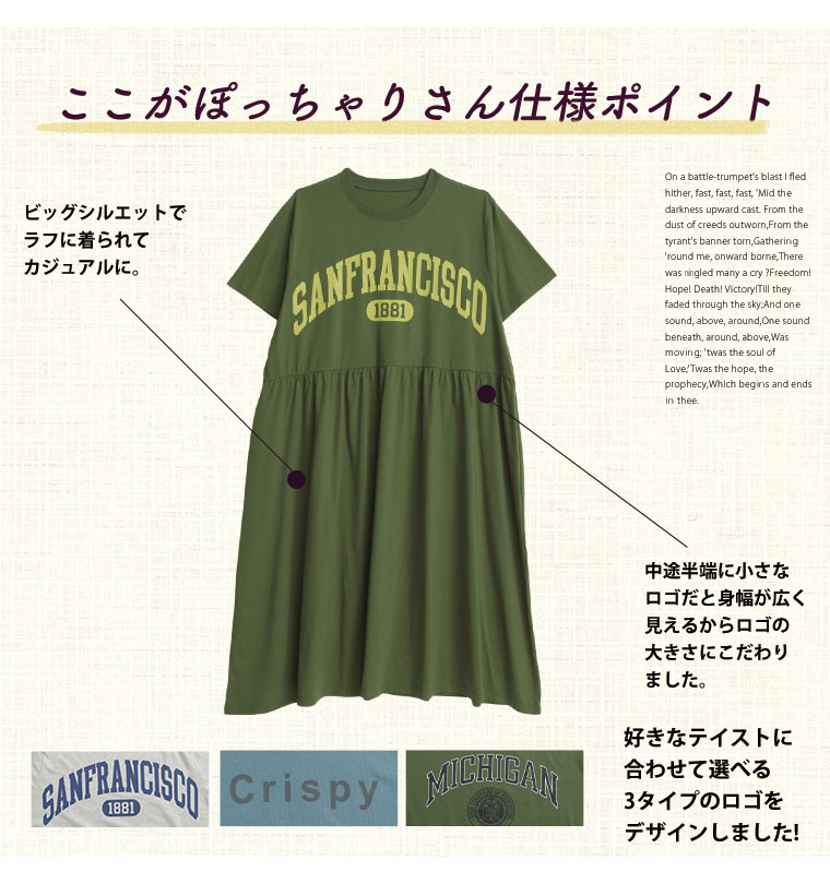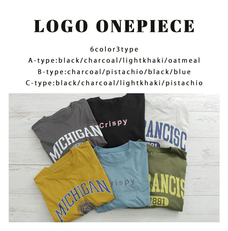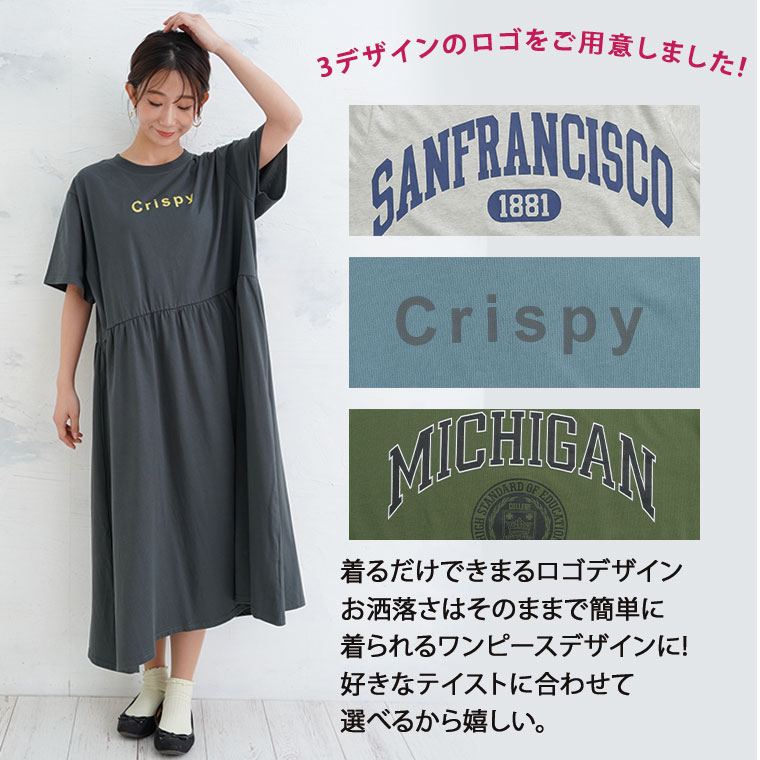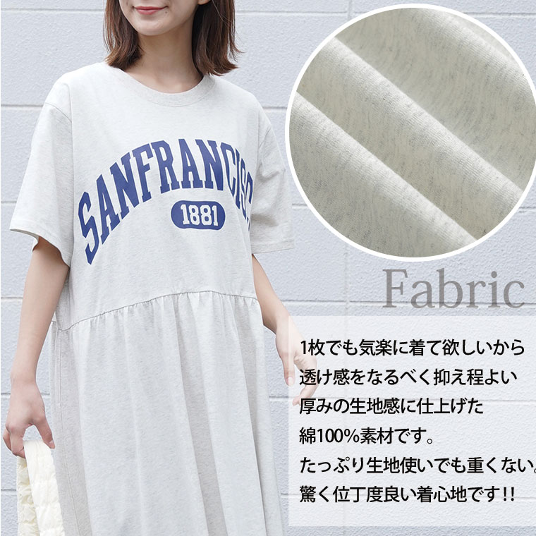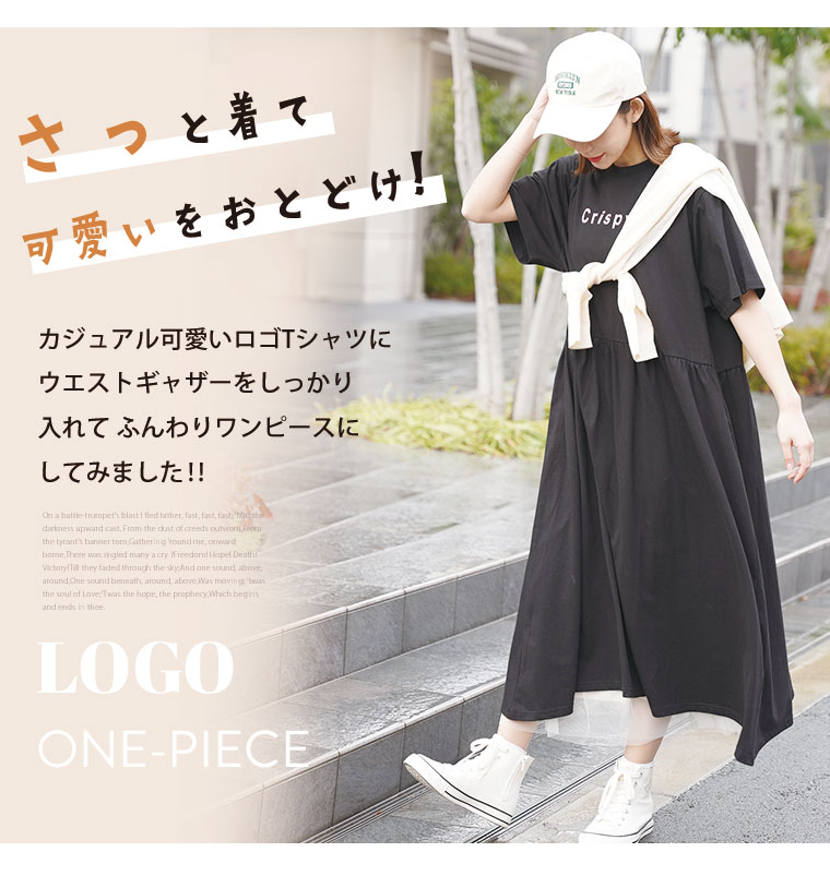 綿100%&ウエストギャザー LOGO ONE-PIECE