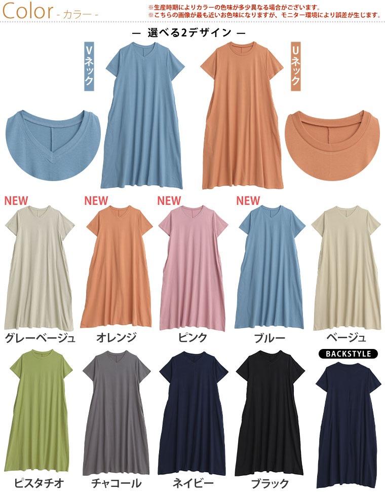 3. 大きいサイズ 新タイプ・新色・サイズ追加!! USAコットン ネック選べる Aラインワンピース