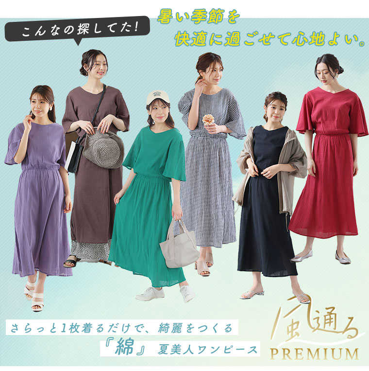 風通るPREMIUM上品爽やか綿100%夏ワンピース
