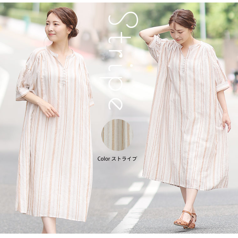 オフホワイト、ストライプ:麻65% レーヨン35%