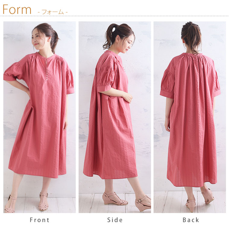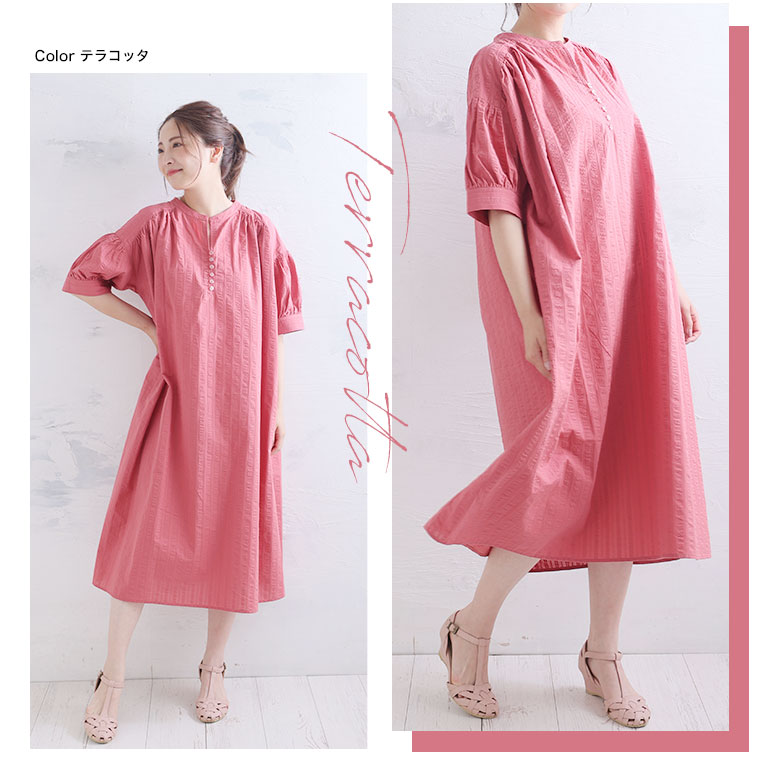 さらりと涼しく着れる五分袖Aラインワンピース