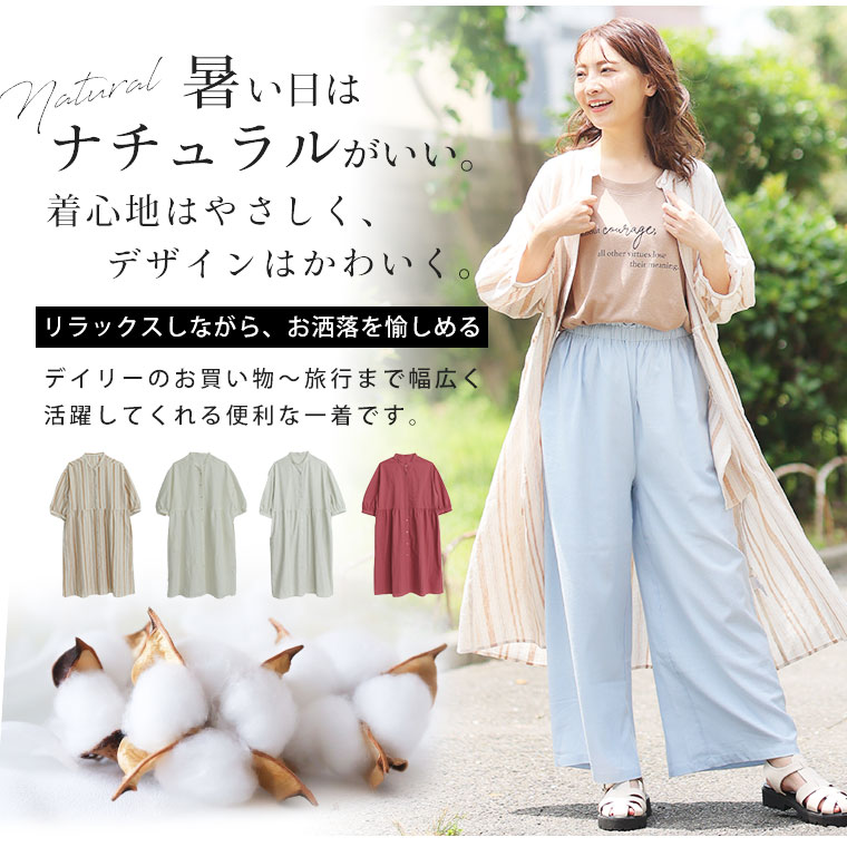 さらりとした綿100%と綿麻素材で夏を気持ちよく過ごせる
