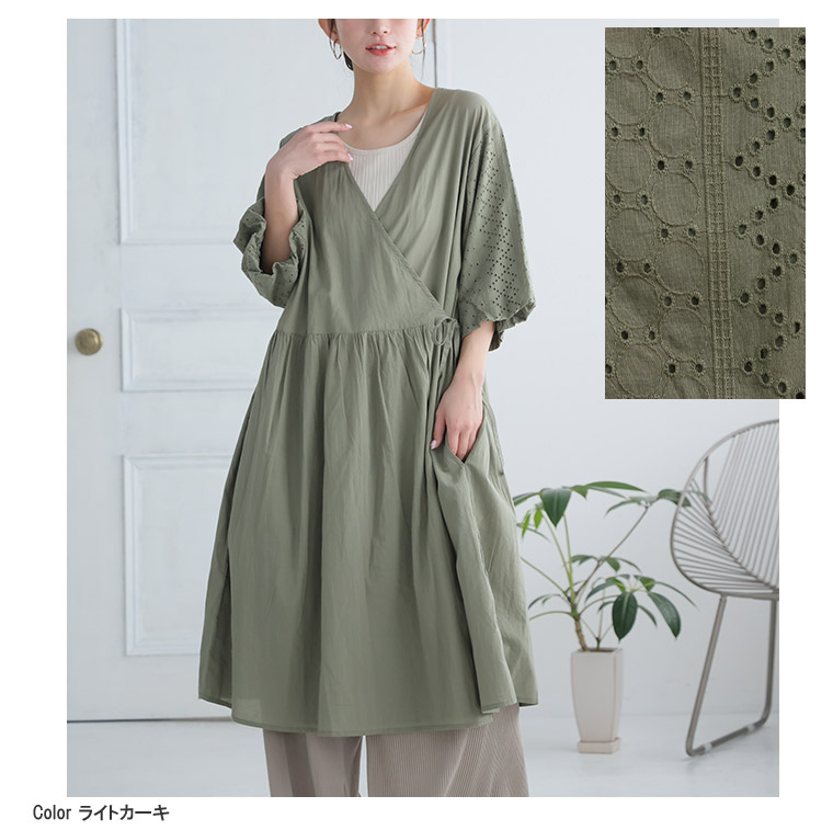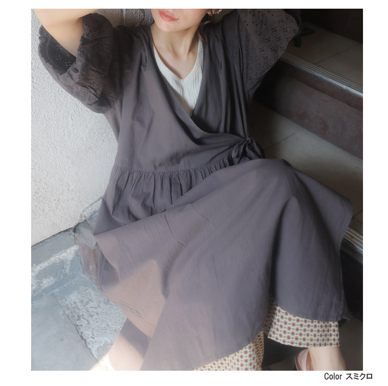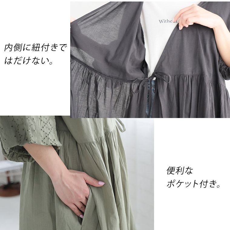 綿の風合いとレースの透け感で涼し気な羽織りワンピース