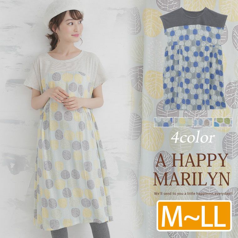 淡い北欧柄が大人カジュアルな印象に。ゆったり半袖ワンピース