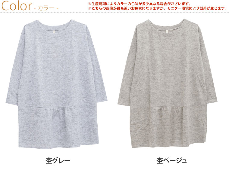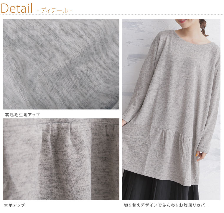 大きいサイズ 裏起毛 裾ギャザー切替 長袖 ワンピース