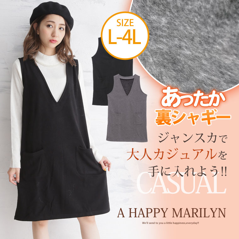 ワンピ ジャンパースカート 秋ワンピース 秋ワンピ LL 3L 4L 秋 秋物 秋服 冬 冬物 冬服 あったか 暖かい 裏起毛 起毛 ぽっちゃり かわいい おしゃれ カジュアル 裏シャギー Vネック ジャンスカ