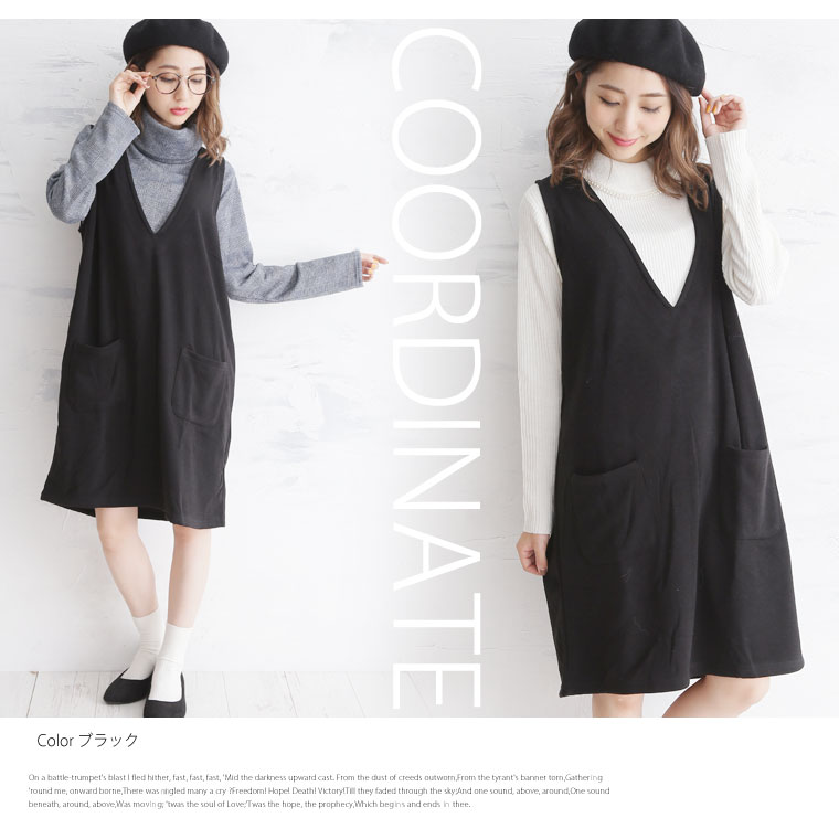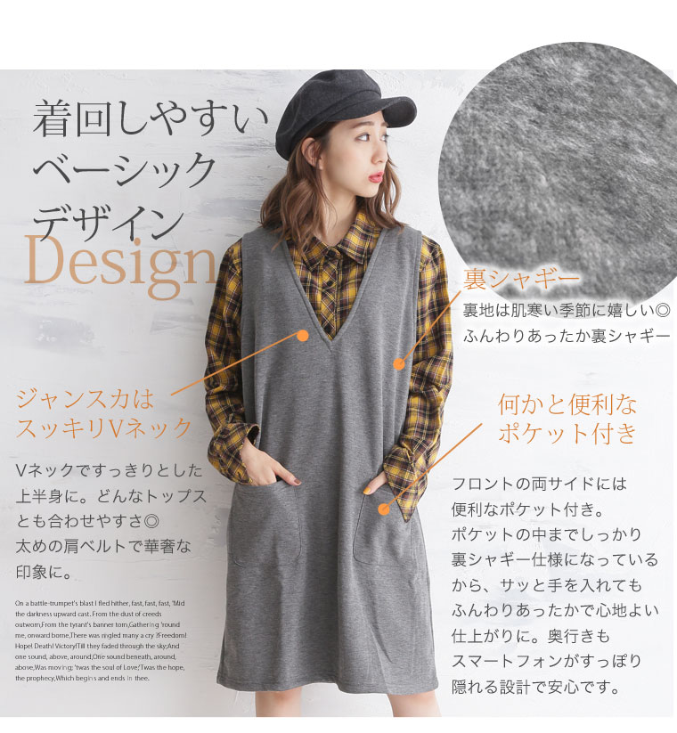 あったか裏シャギーで寒い季節もポカポカ♪Vネックジャンスカ
