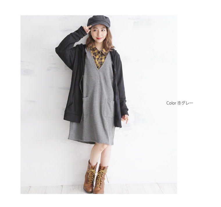 3. 大きいサイズ 裏シャギー Vネック ジャンスカ
