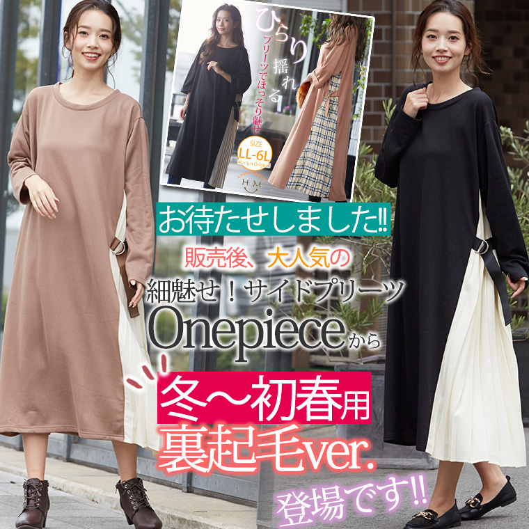 大人気のサイドプリーツワンピに裏起毛登場!!
