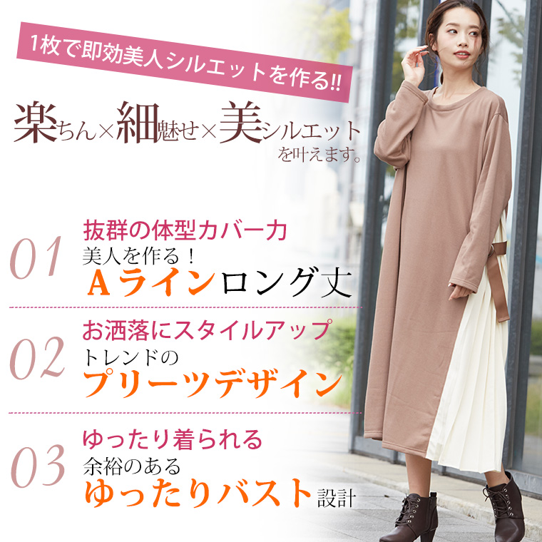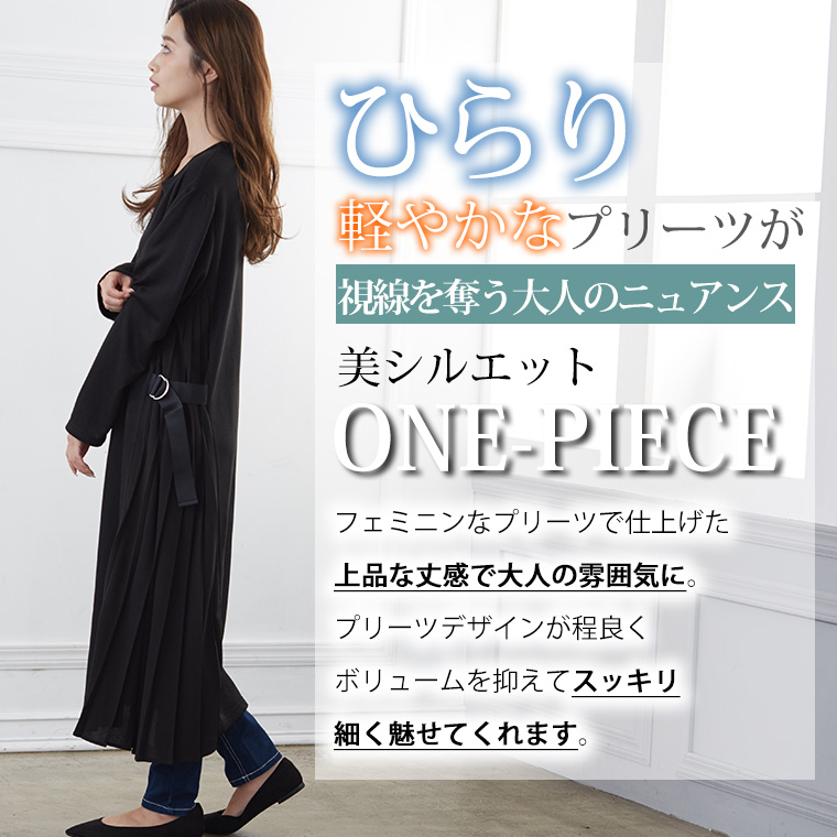サイドのプリーツが美シルエットの秘訣!一枚でキマるワンピース