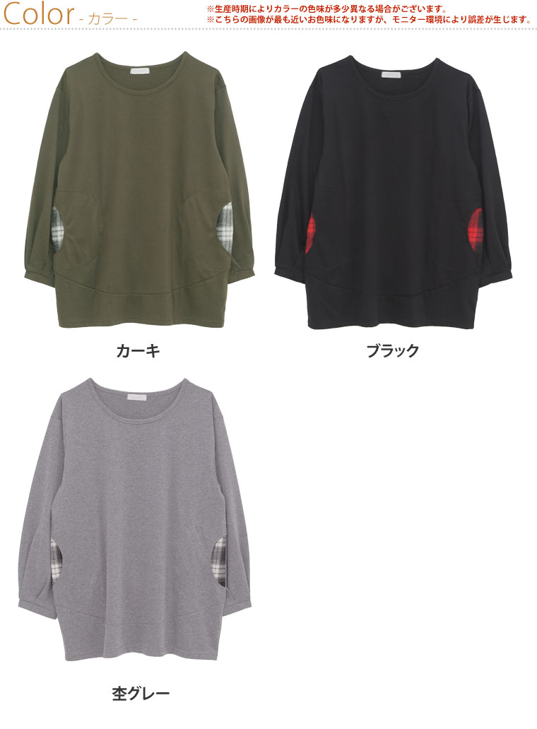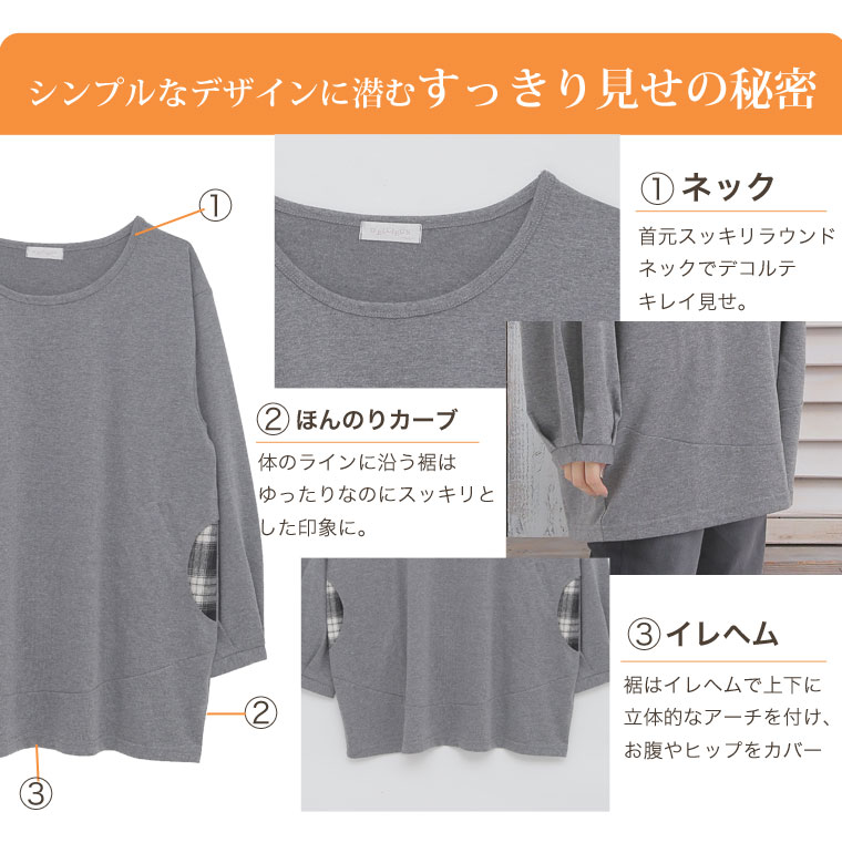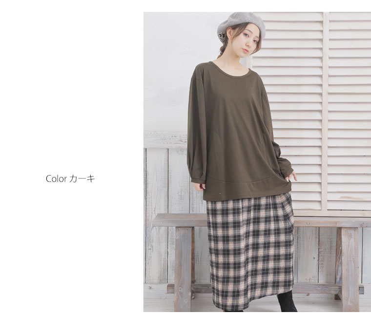 3. 大きいサイズ チェックポケット 長袖 コクーン チュニック