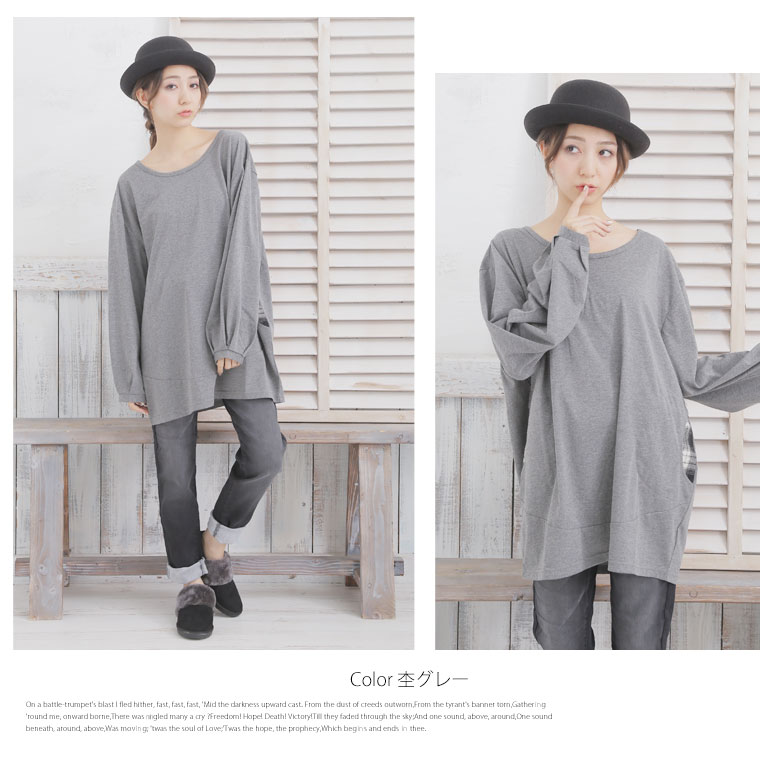ポケット口のチェック柄がアクセント!!コクーンチュニック