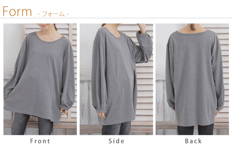 シンプルデザインのトップスです。お尻がすっぽり隠れる着丈でジャストサイズで着用できました。