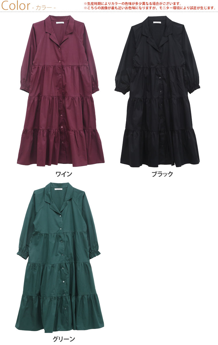 ふんわりかわいいシルエットが魅力♪肌触り◎の綿100%開襟ティアードロングワンピ