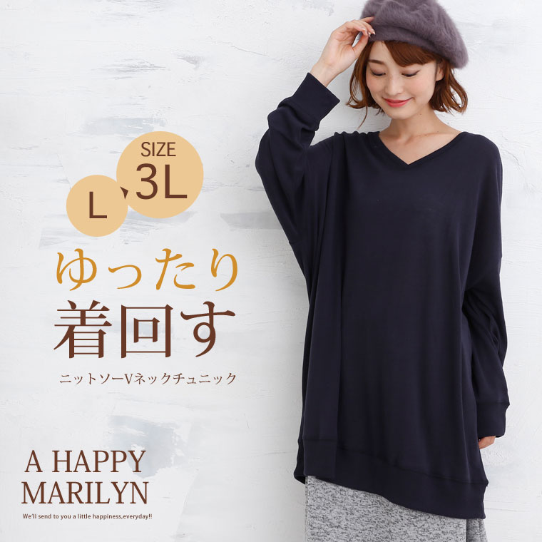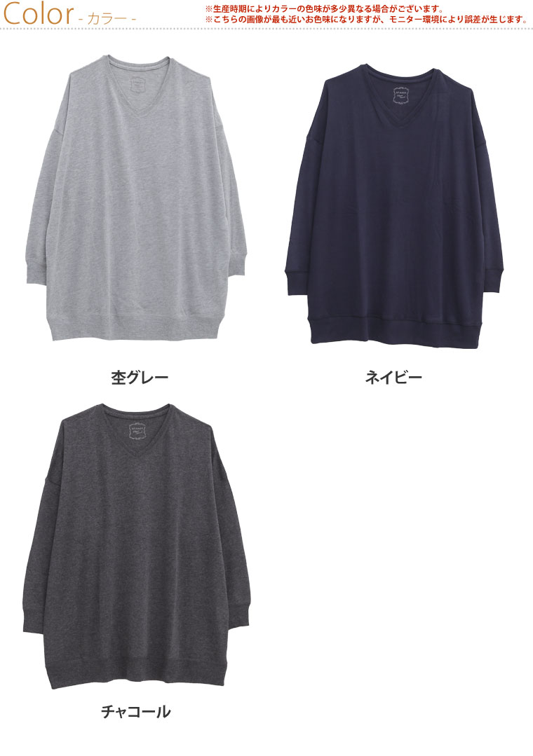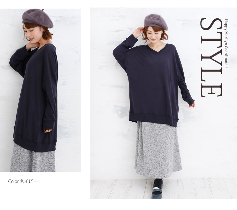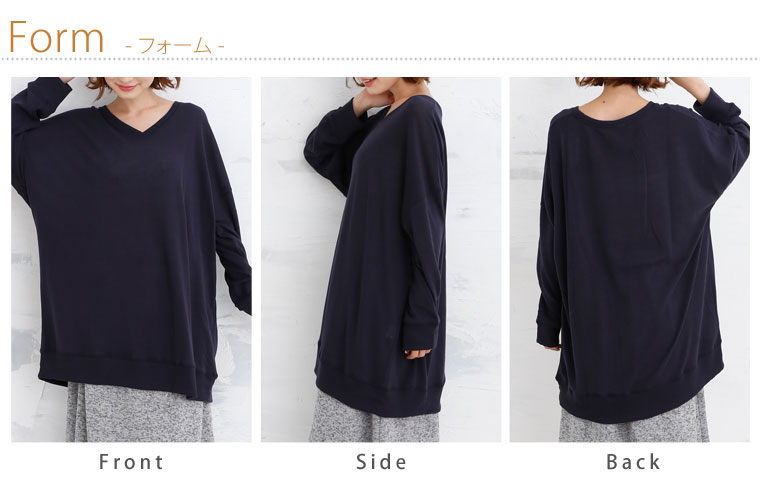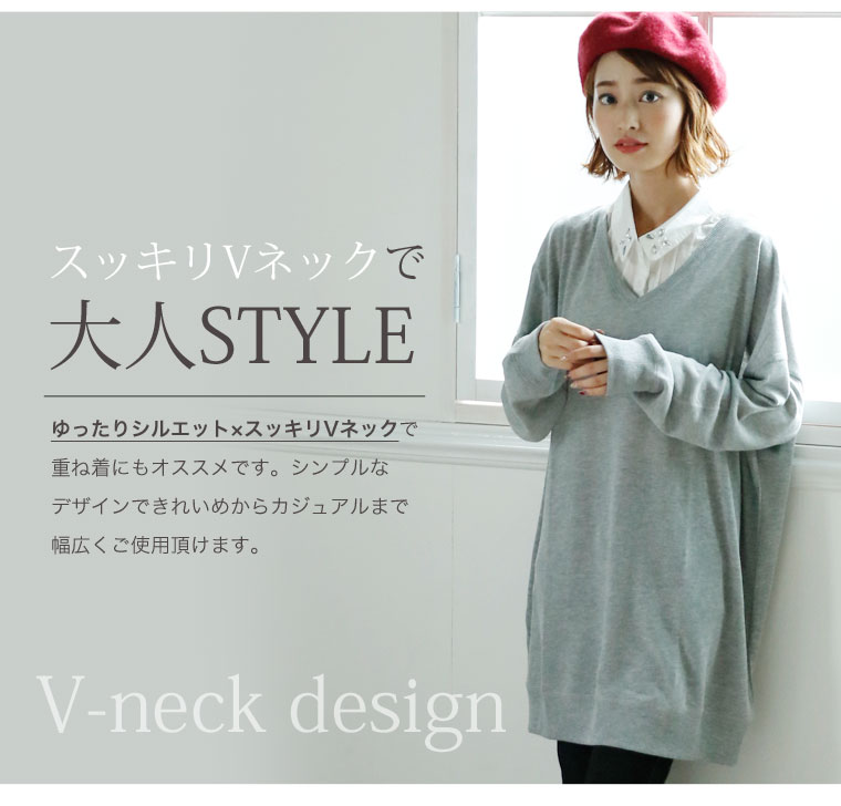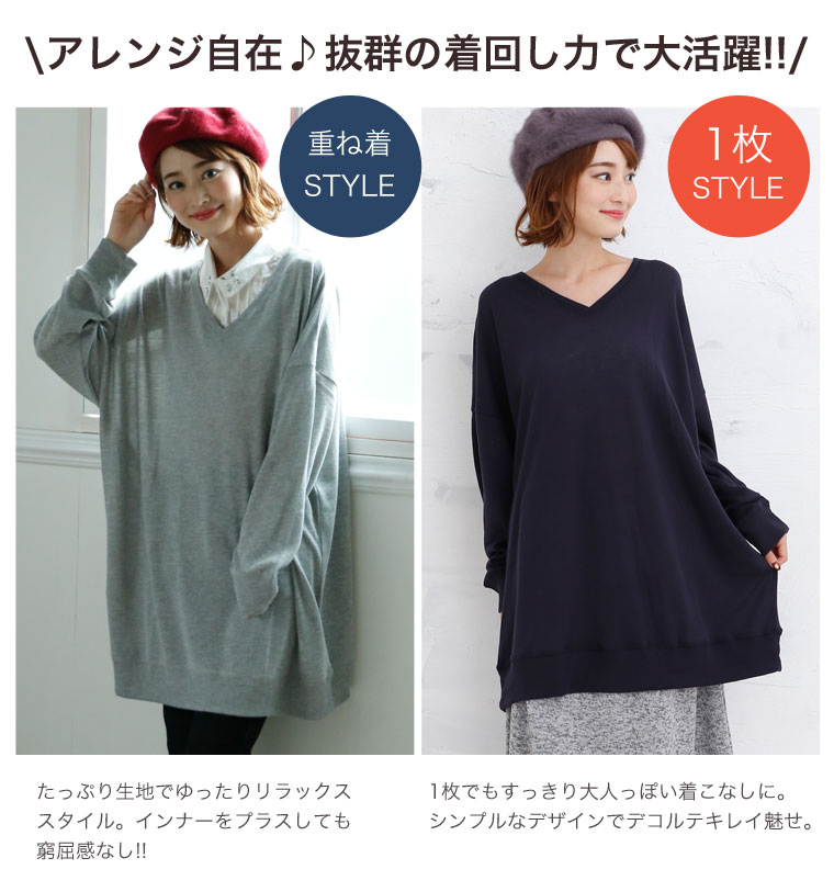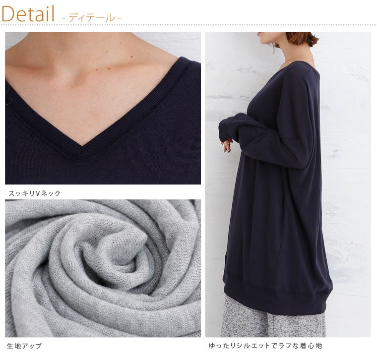 柔らかいニットソー素材でゆったりリラックス。Vネックチュニック