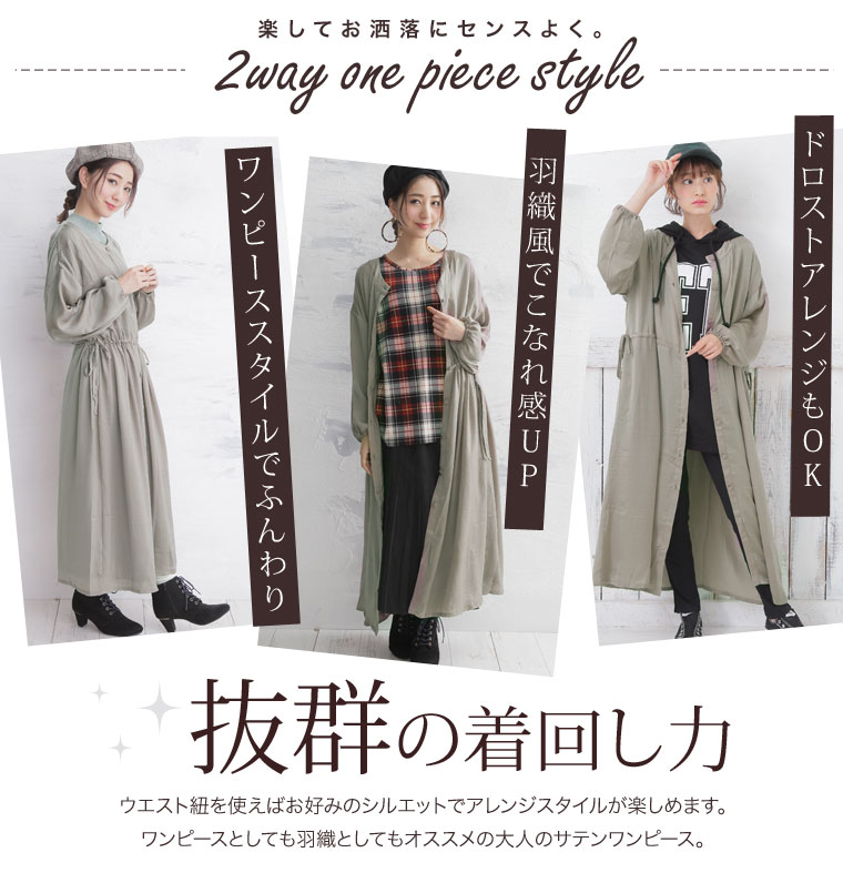 ワンピとしても羽織としても使える2way仕様!!ウエスト紐を使ってアレンジスタイルも楽しめます。