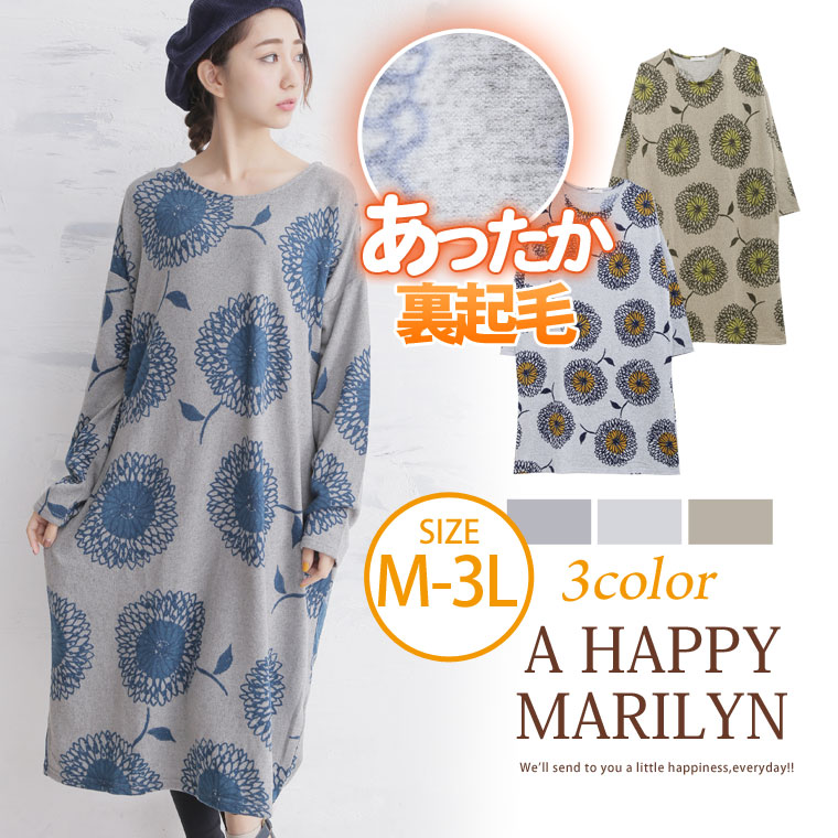 ゆったりワイドなサイズ感で体型カバー◎ふっくら起毛ワンピース