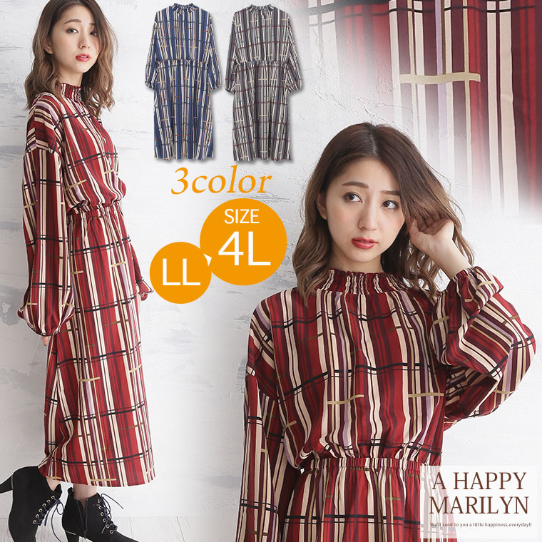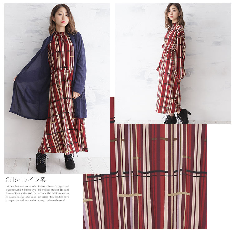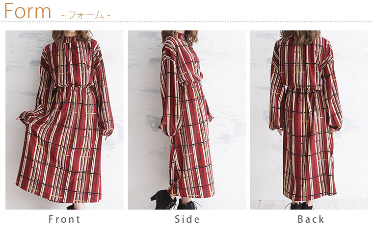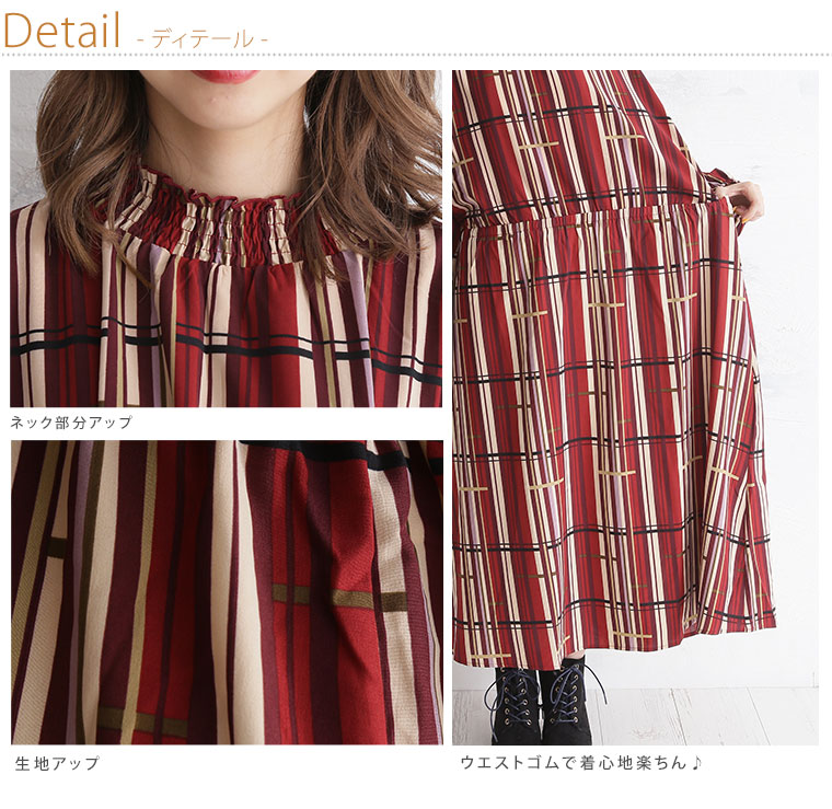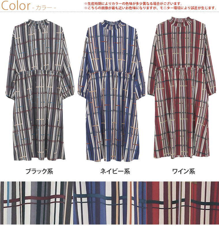プチハイで上品な大人可愛さ。幾何学プリント長袖ワンピース