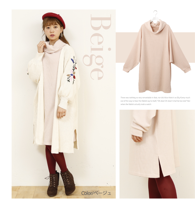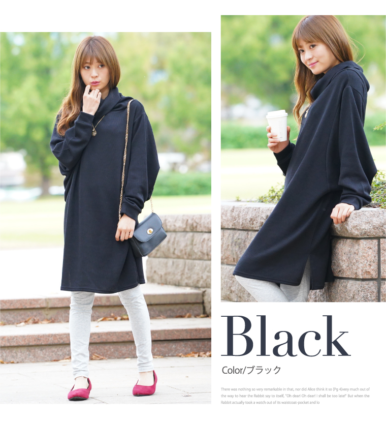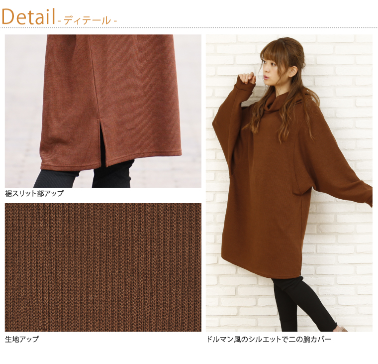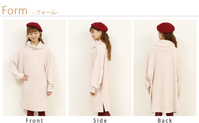 落ち感◎のリブ調ニットソーでシルエットが膨らまない!オフタートルチュニック